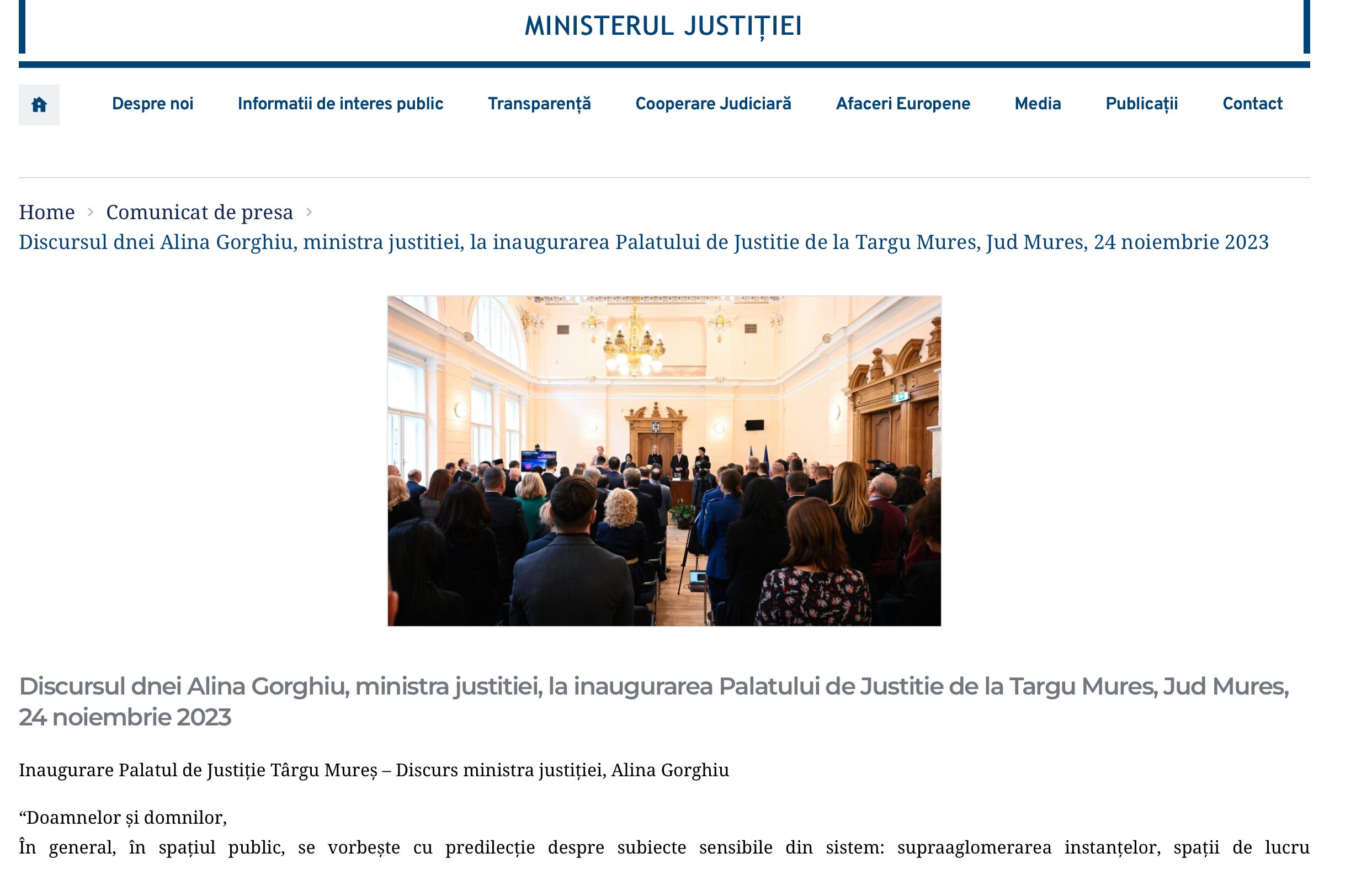 Întregul context factual conduce spre bănuiala legitimă că în cauză a avut loc o intervenție a Ministrului Justiției, Alina Gorghiu – prietenă fidelă al liderului PNL – președintele CJ Suceava, Gheorghe Flutur – cu prilejul inaugurării Palatului de Justiție – CA Mureș, în noiembrie 2023. Vezi aici un video relevant. Astfel, din pozele aflate pe rețelele de socializare, articole, bârfe și mărturii ale apropiaților celor doi lideri PNL, relația de susținere reciprocă între Alina Gorghiu și Gheorghe Flutur este de notorietate. Mai mult, baronul PNL Gheorghe Flutur are un cuvânt greu de spus în PNL-ul condus de Nicolae Ciucă, șefal doamnei ministru, cel care îi numește pe bandă rulantă pe oamenii de casă a lui Flutur în poziții cheie în ministere, instituții și în firmele de stat suculente.