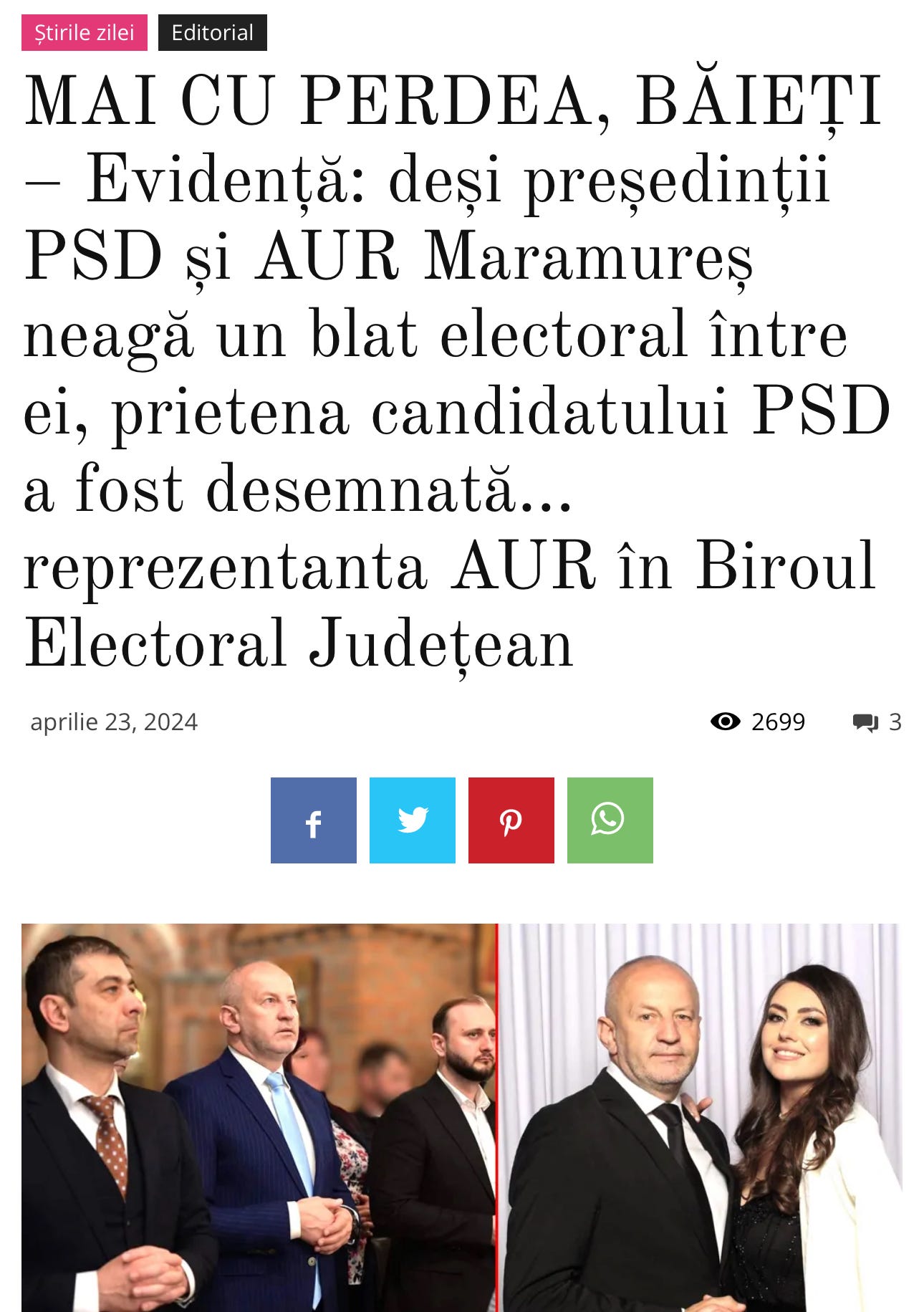 astazi, un jurnalist de investigatii de exceptie din Maramures, Catalin Vischi, a demonstrat inca o data ca furia lui Simion impotriva PSD este falsa si ca accepta fara jena in teritoriu blaturi cu partidul lui Ciolacu. Cititi ce fac cei din AUR la Maramu: