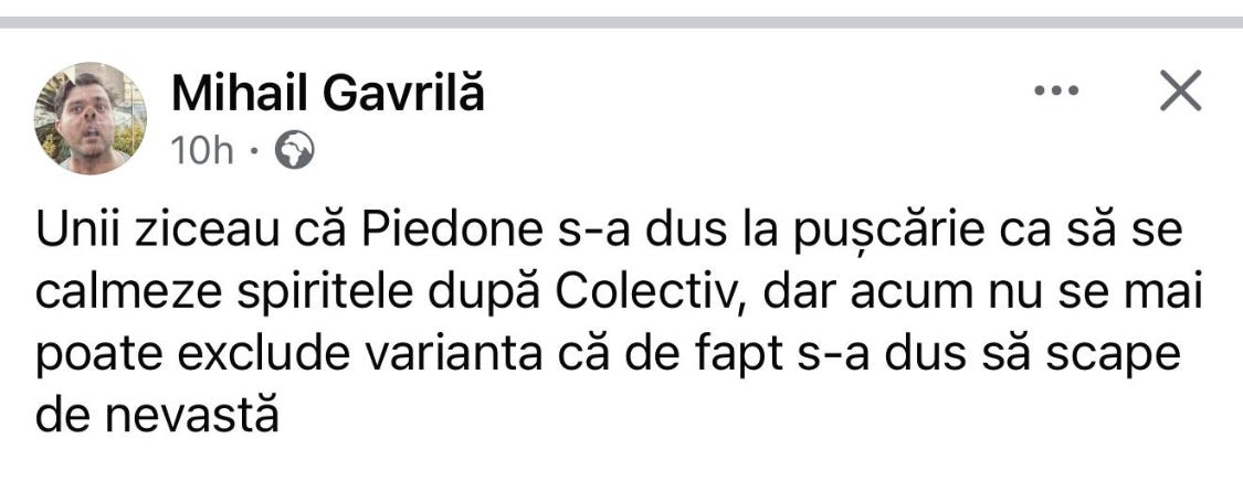 "Ia să-ți facem noi o nefăcută, un azilul groazei ca la Firea. Și s-au folosit de materialul clientului, pentru că Piedone e grobian și pe persoană fizică, și pe persoană penală. Și i-au dat-o, de n-a avut aer. Dacă ar fi fost cuminte, Piedone, n-apărea acest material, îl lăsau în pace. Dar pentru că a călcat pe niște becuri și becurile au făcut poc sub picioarele lui. Fac cu Piedone ca și cu Firea. Gabrielei Firea nu i s-a întâmplat nimic penal, dar a fost tăvălită suficient de mult încât să nu mai conteze în campania din 2024. ”, zice Mirel Palada.