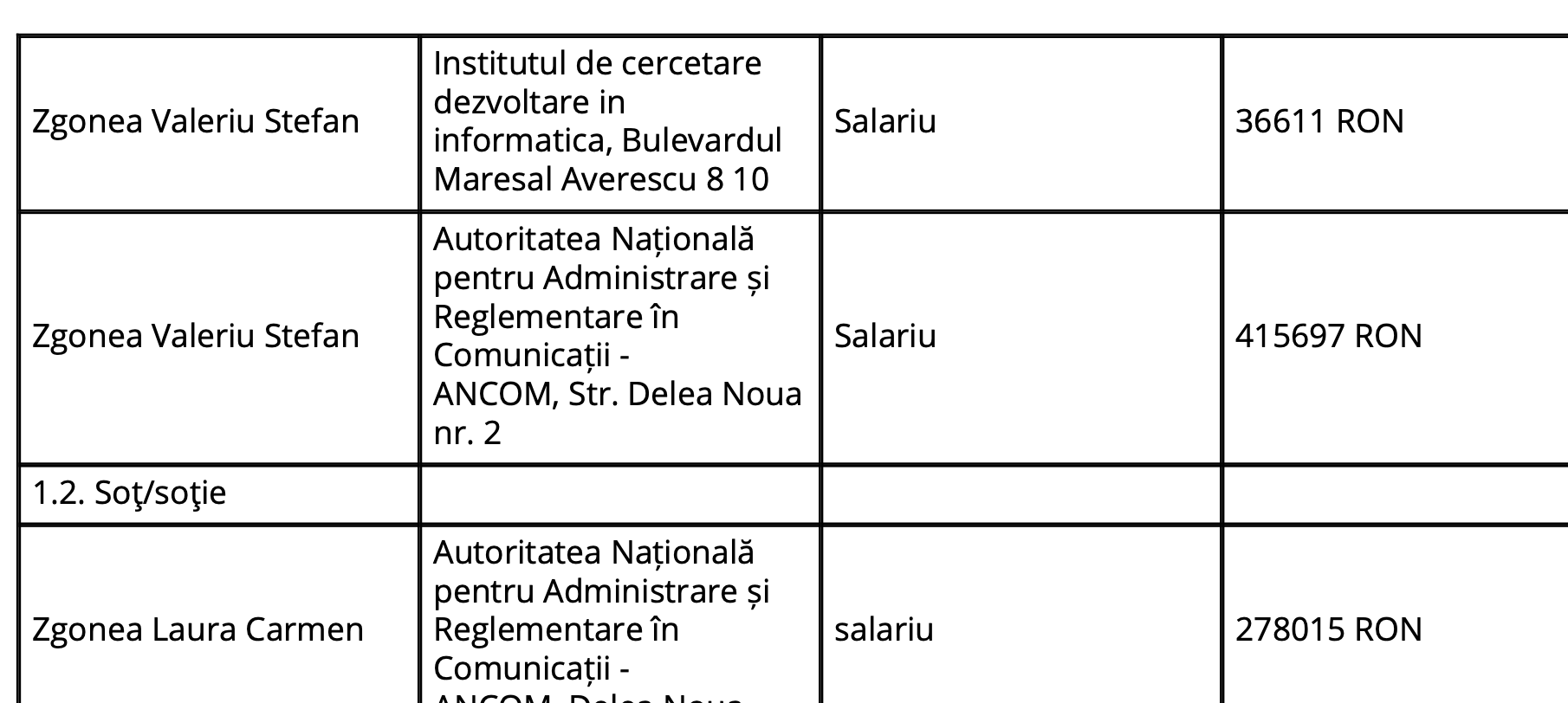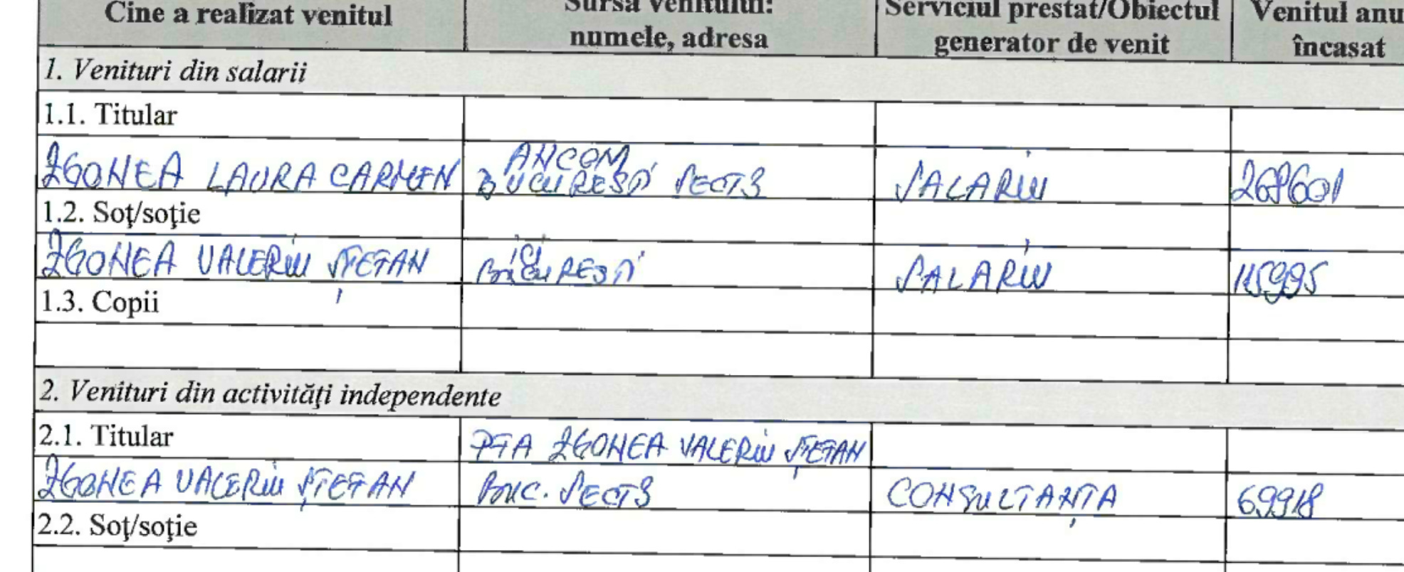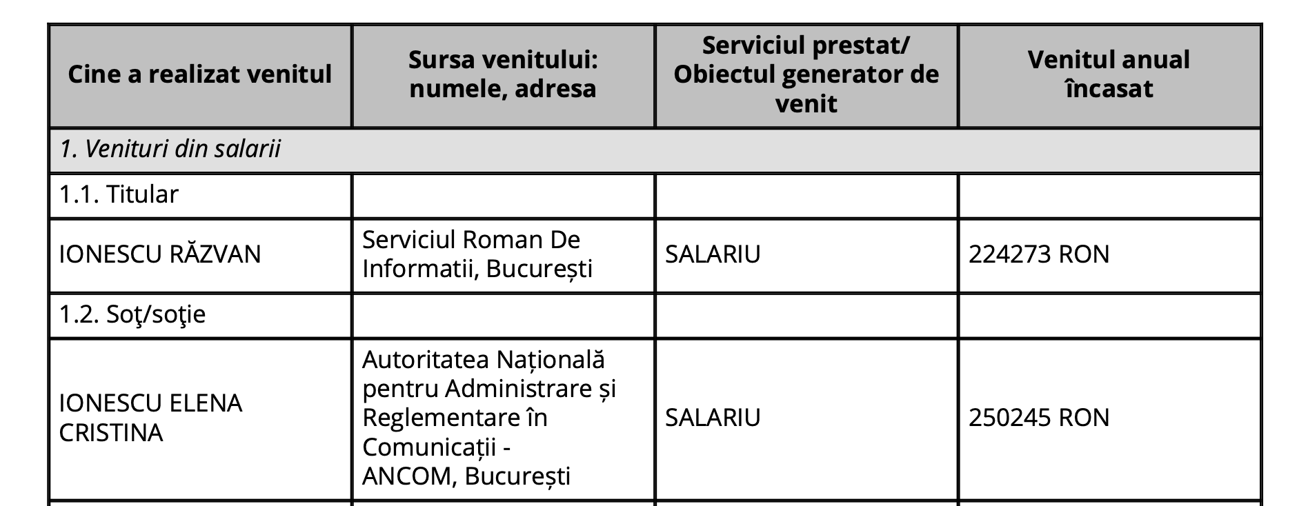 De ce e scut Razvan Ionescu pentru Zgonea? Fiindca nevestica lui Ionescu e si ea aciuata la ANCOM. Sigur, cu un tupeu de nevasta de securist, ea si-a scos declaratiile de avere de pe site-ul ANCOM, ce plm, isi permite, dar aveti dovada ca asa e cum spun, fiindca domnul Ionescu chiar asta nu poate face, sa isi ascunda declaratia de avere, ca iese câh. Din care observam ca angajata ANCOM, Ionescu Cristina Elena, siguuuuur, foarte competenta pentru pozitia asta, aham, ca de aia e si directoare, duce acasa mai mult cheşulet ca ditai seful de facto al SRI!