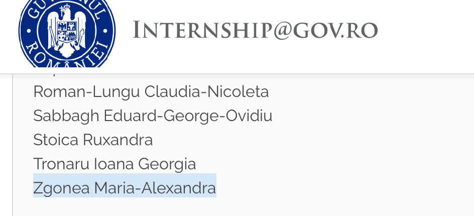 Aia mica a crescut destul de mare, indestul de mare ca sa o poata tati baga la internship la secretariatul general al guvernului. Sa ii faca “sivi” si sa o plaseze si pe ea intr-un post caldut inca de la 18 ani. Ca asa fac femeile Zgonea - calaresc statul roman.