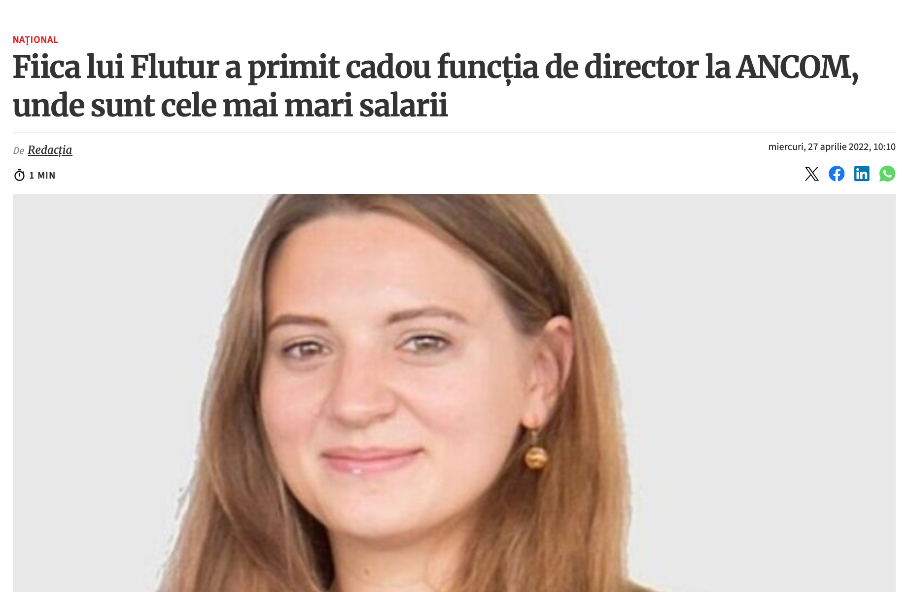Din 2018 roade la ciolanul ANCOM. Putinele voci curajoase din ANCOM mi-au povestit sub protectia anonimatului ca EA, Laurica, e cea care conduce la modul real Autoritatea (intr-un episod viitor, o sa va povestesc lucruri misto despre Laura: cu cine din Autoritate ii pune coarne lui Valerica, cum a reusit sa ramana atatia ani in umbra, cine e tatal ei, cine e tatal ei vitreg, cine e mama ei, hmmm, personaje grele, foarte grele - cei care mai au info suplimentare sa le dea pe mailstrictsecret@gmail.com).
