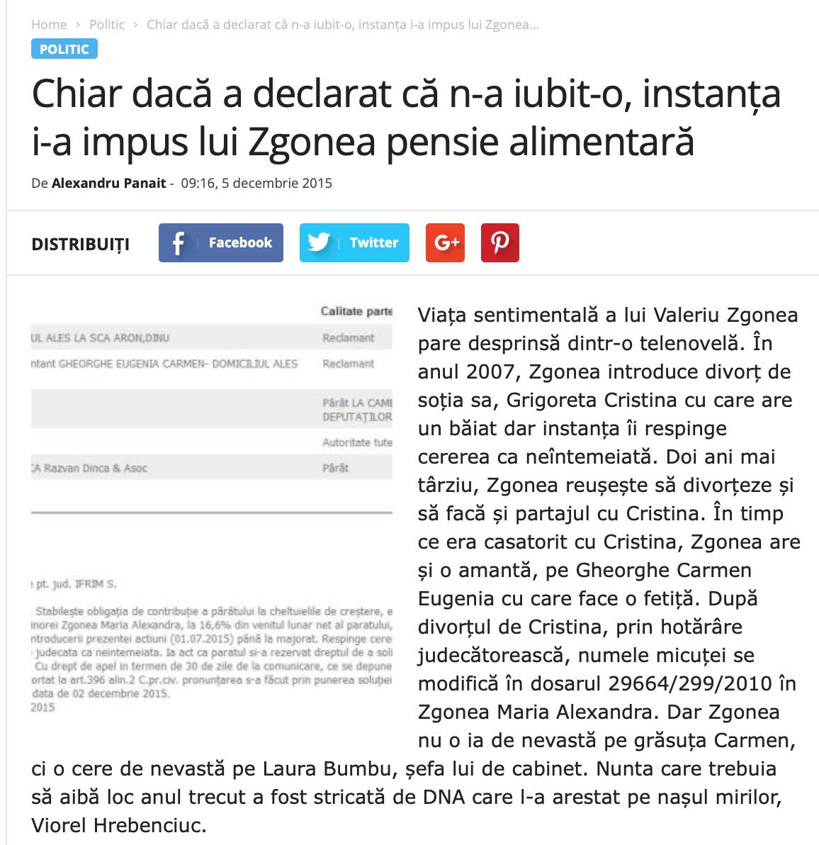 Ba inca grasuta de Carmen a obtinut in instanta inclusiv ca numele micuței sa se modifice în Zgonea Maria Alexandra (în dosarul 29664/299/2010).