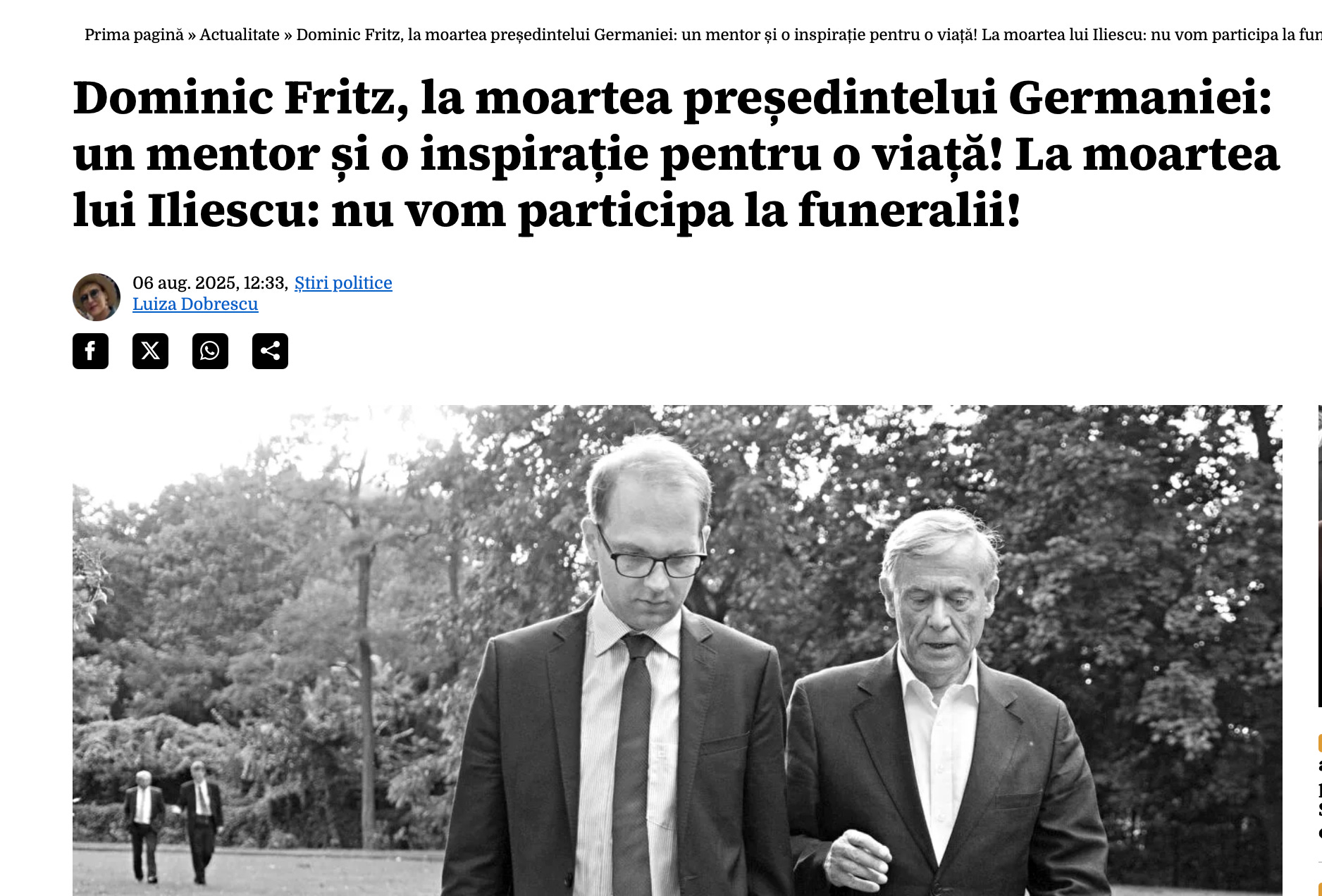 este absolut jegoasa lipsa de mesaje de condoleante la adresa Ninei Iliescu din partea lui Nicusor Dan si Klaus Iohannis. Niste jegosi. Ba, nu vrei sa il legitimezi pe Iliescu? Perfect. Da un mesaj de condoleante sotiei indoliate si aia e! Dar RESPECTA eticheta celei mai inalte functii din stat! Mucusor si Iohannis au distrus si acest standard. Basescu le-a dat o lectie importanta ieri, de OM DE STAT, nu de ciuri-buri, asa cum sunt astia doi! Trist.