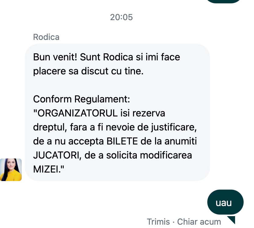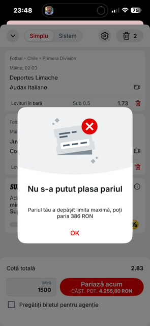 “buna seara. am si eu o intrebare. de vreo cateva zile sunt mega limitat de soft pentru a pune pariuri mai mari de 386 de lei. asta nu mi s-a intamplat in ultimii 3 ani cu voi niciodata desi am avut constant si pariuri mari. de ce ati inceput sa faceti asta? va transformati in Betano? adica imi ingraditi dreptul la joc numai pentru ca ati vazut ca am niste winuri? e normal?”