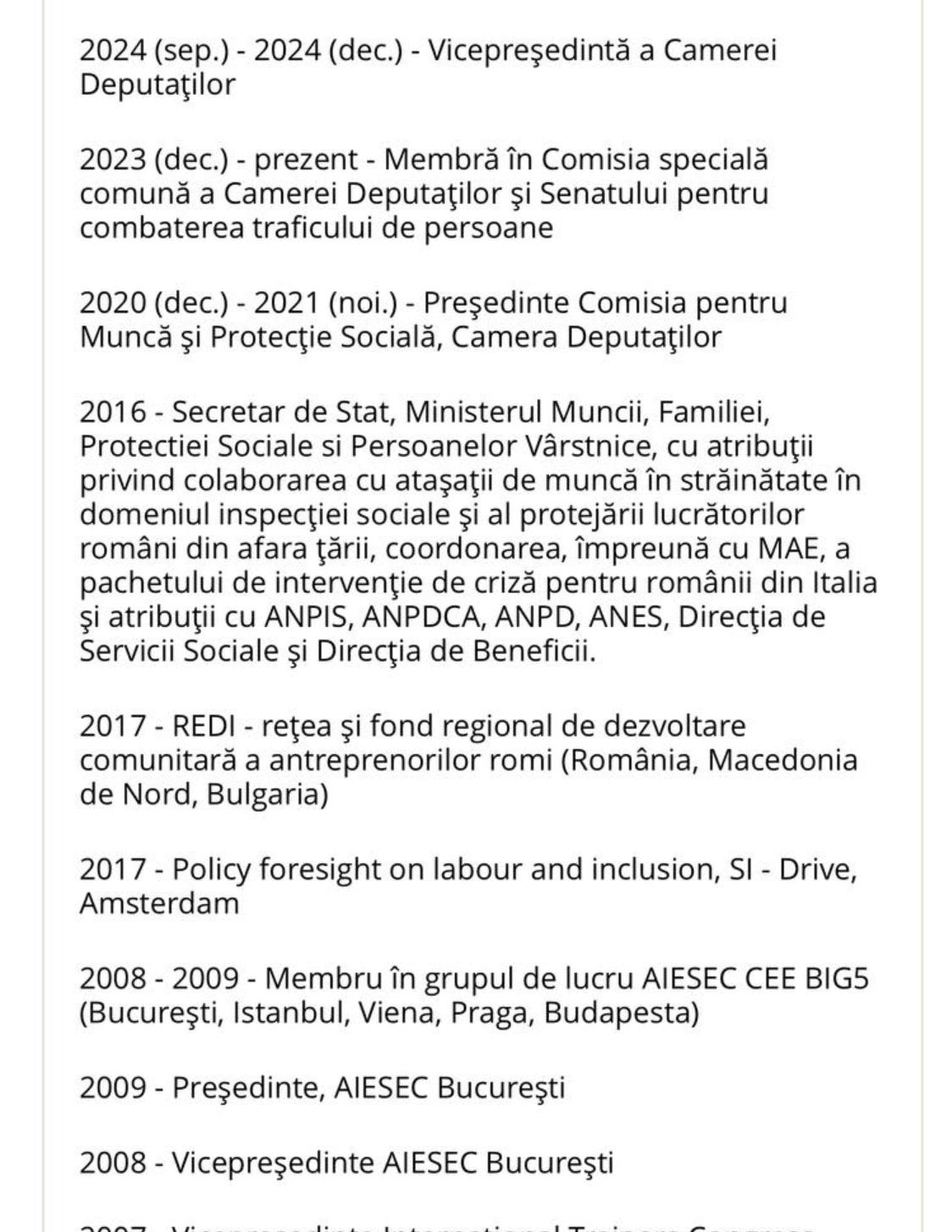 Prima slujba adevarata a madamei se întâmplă in 2016 (pe combinația aceluiași Ghinea): o sinecură politică evident, secretar de stat in ministerul Muncii (fara nicio experiență in domeniu), la papa Ciolos in Guvern