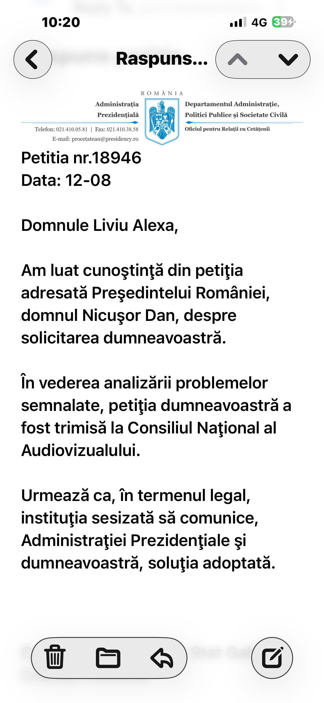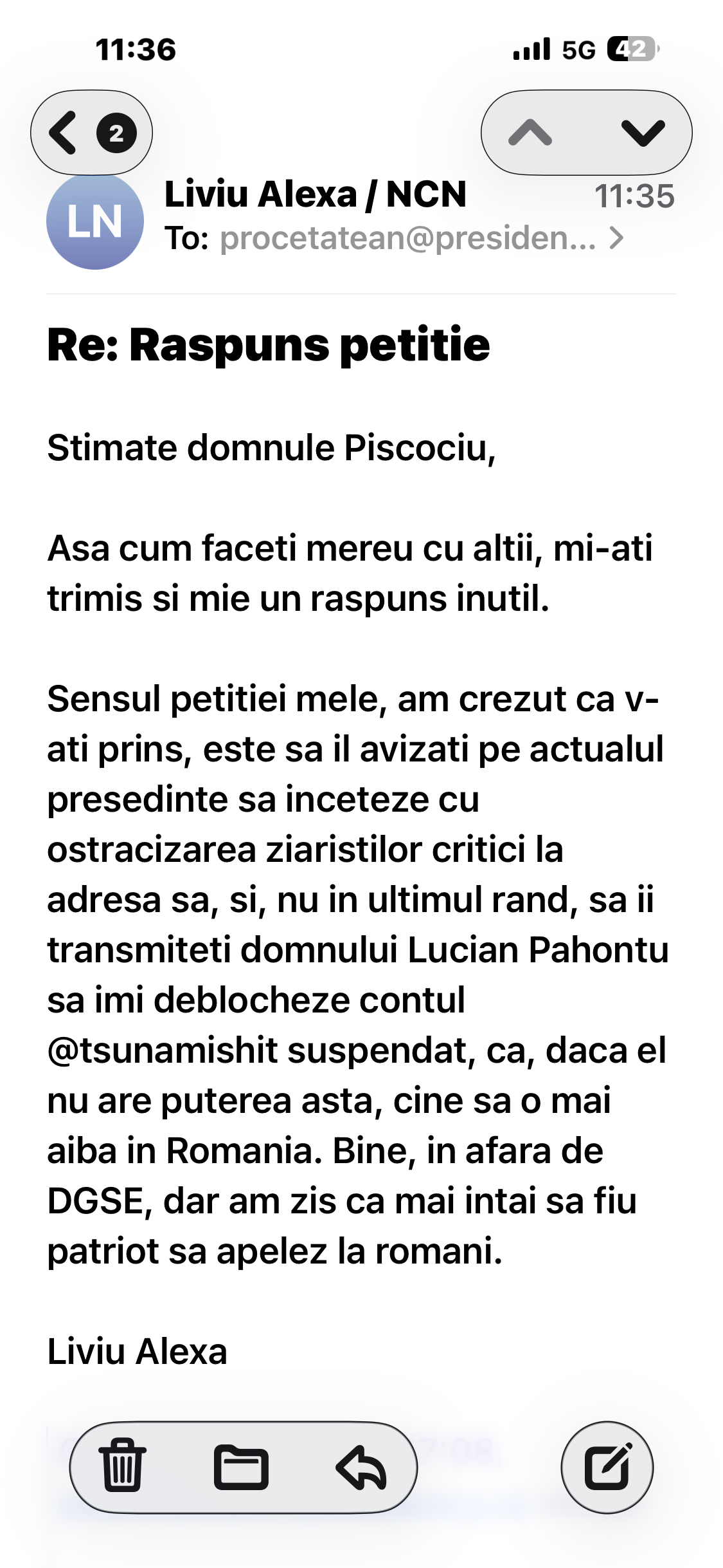 Bolojan nu s-a obosit sa imi raspunda, dar a raspuns Cotroceniul prin obositul consilier prezidential Piscociu, care mi-a trimis o laba trista de raspuns, informandu-ma ca a inaintat plangerea mea la CNA, ahahahaha.
