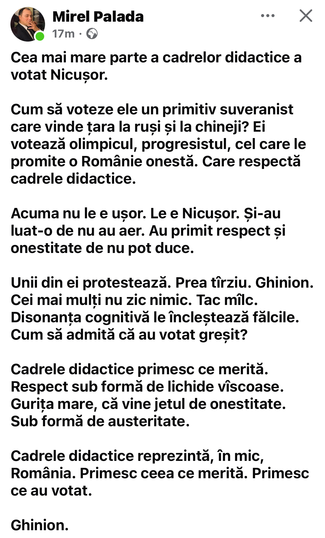 Era tot cu decenta in clanta domnul Nicusor. Azi…