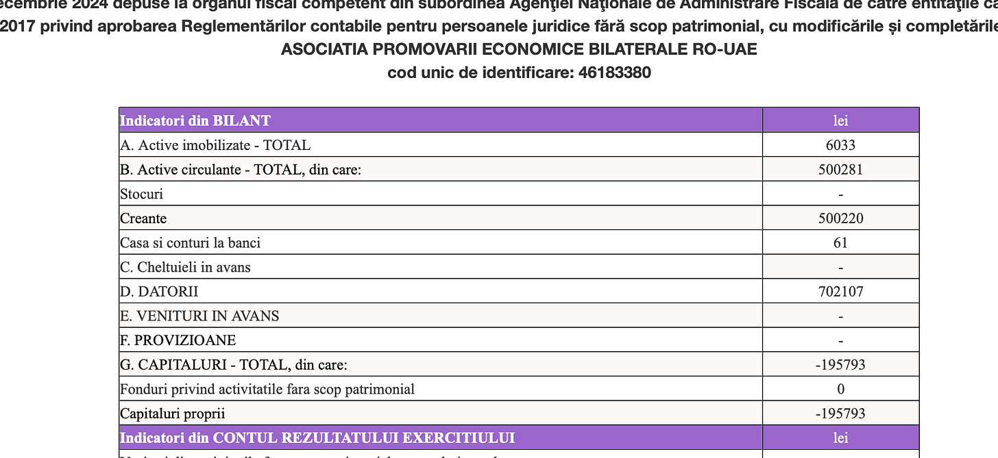 Din pacate a inceput si la Dubai cu aceleasi cacaturi obosite: tot cu "champagne enthusiast", tot cu PR-uri coclite, doar ca de data asta s-a facut "presedinta de asociatie" la o teapa de fundatie cu denumire pompoasa care s-ar vrea cumva un soi de camera de comert romano-dubaieza, dar care e, de fapt, un vax, e presedinta unei asociatii compuse din ea, ea si ea.