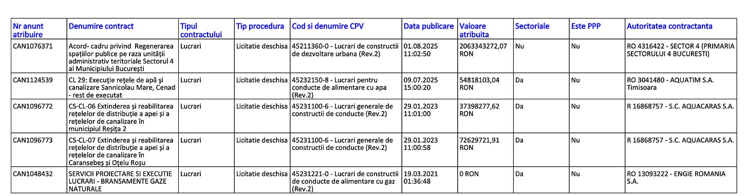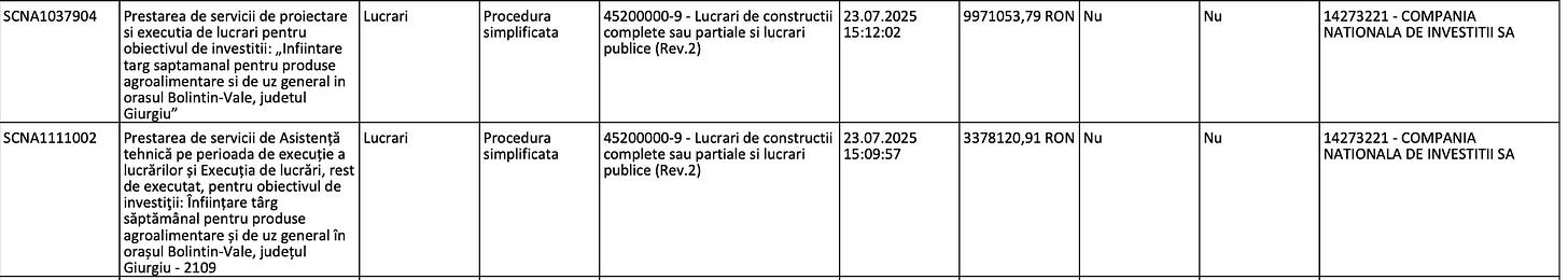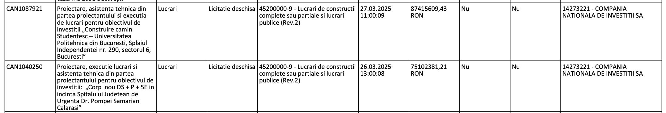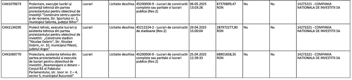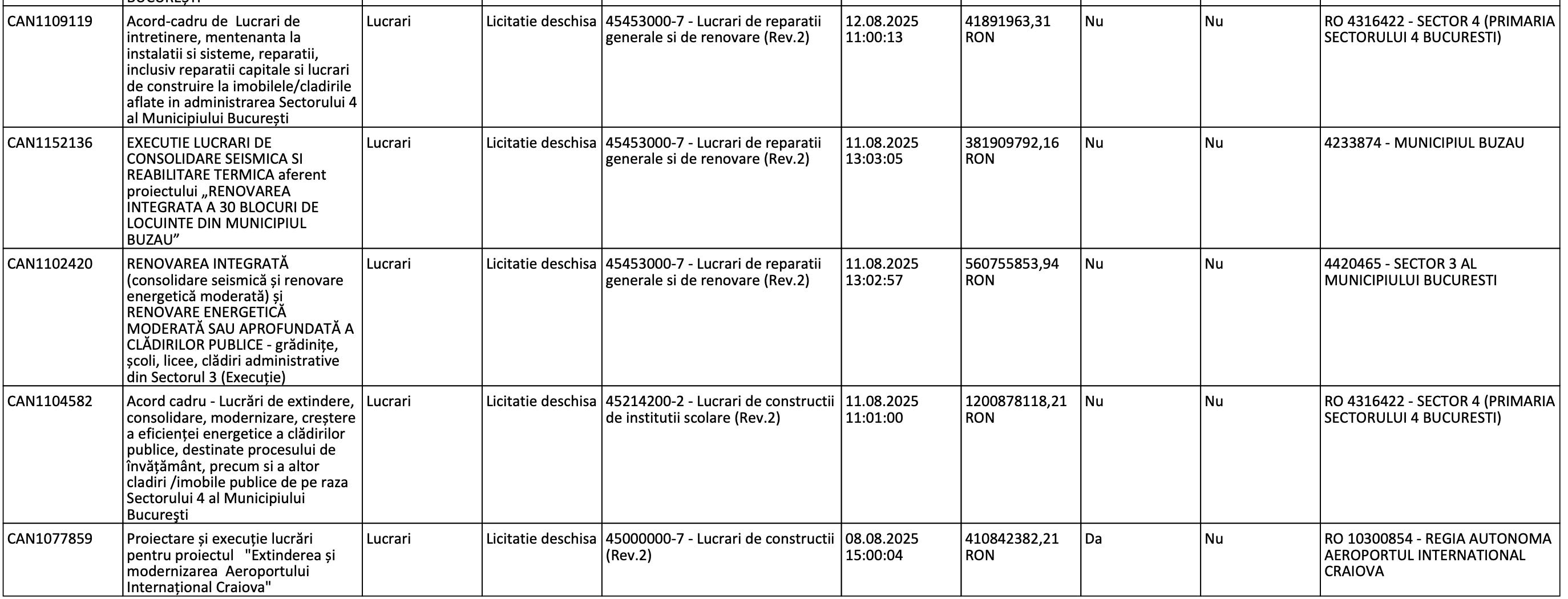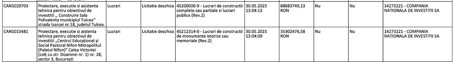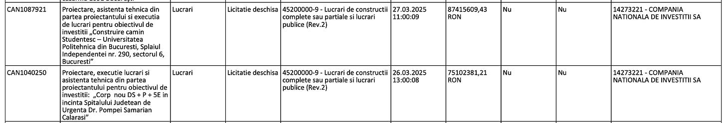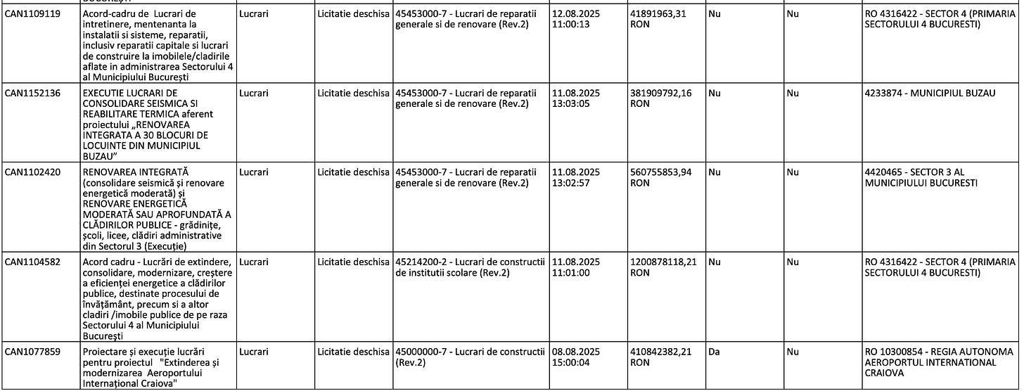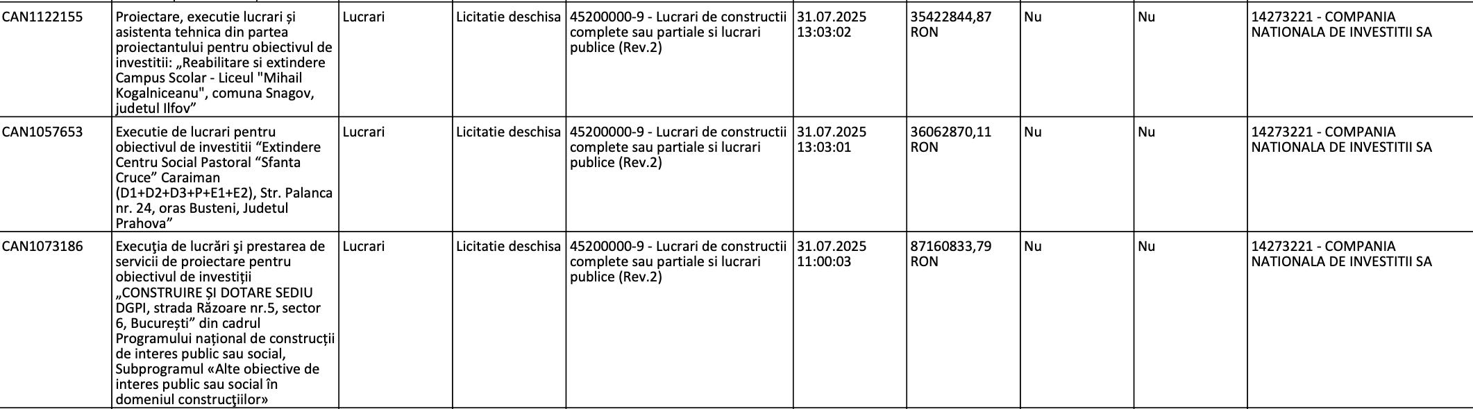 20.115.186.406,73 lei + TVA reprezintă suma contractelor atribuite în 2025 până la data la care scriu aceste cifre (29.VIII.2025), din care 3.310.068.374,89 lei + TVA sunt cu CNI. (la care se mai adaugă un acord-cadru căruia n-am avut timp să-i studiez detaliile - Acord-Cadru-Executarea lucrărilor de reabilitare termică a blocurilor de locuințe din Sectorul 2 al Municipiului București (Lot 1+Lot 2+Lot 3+Lot4))