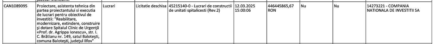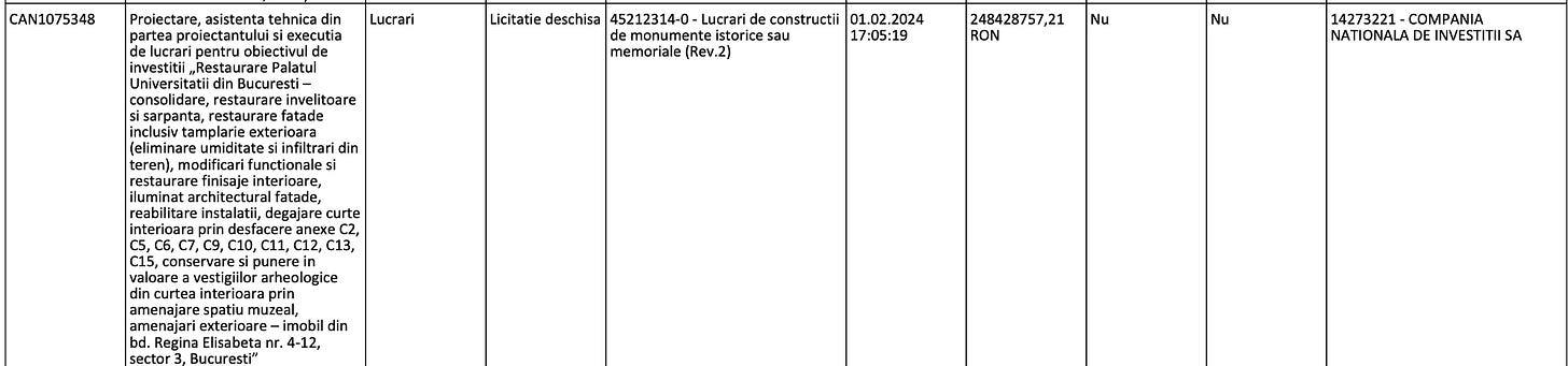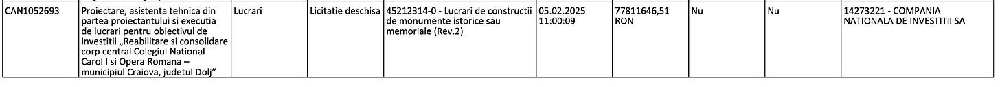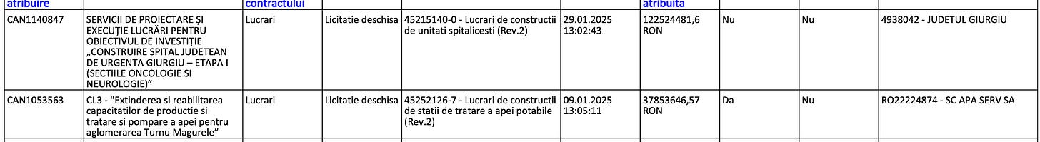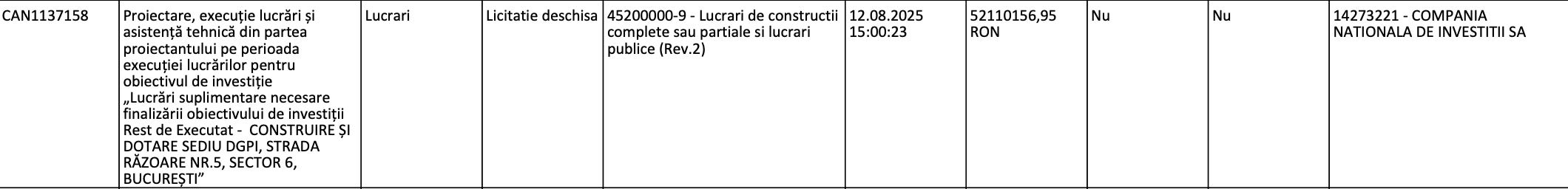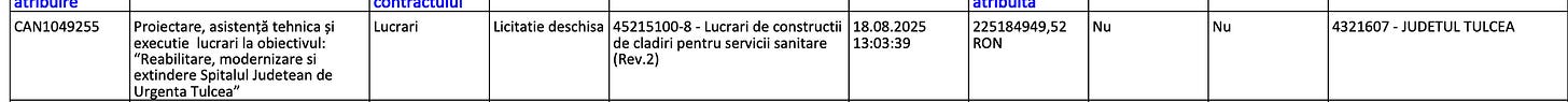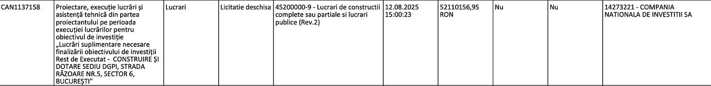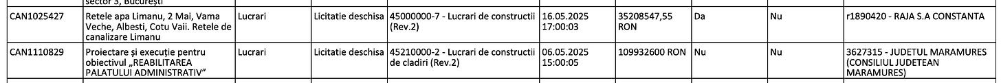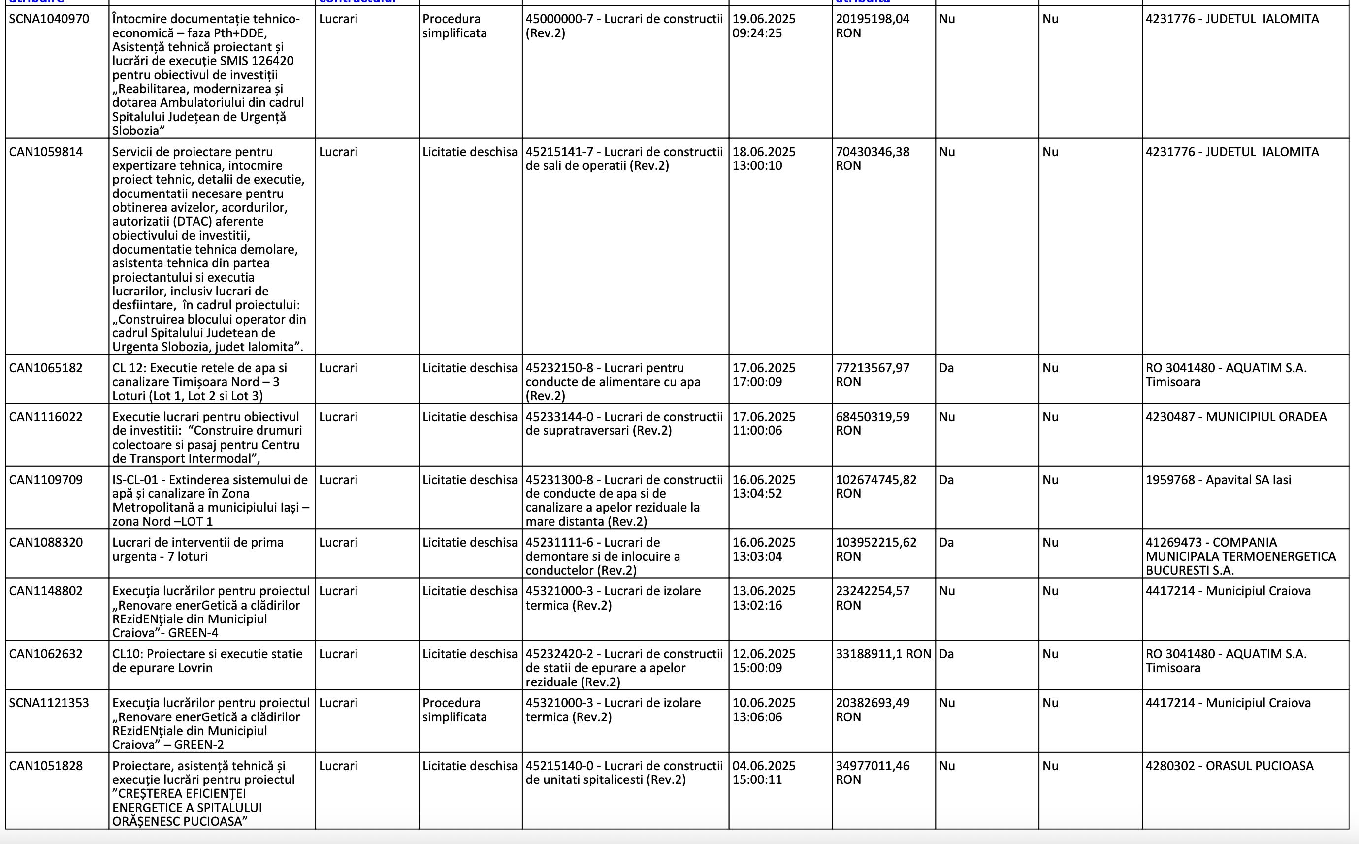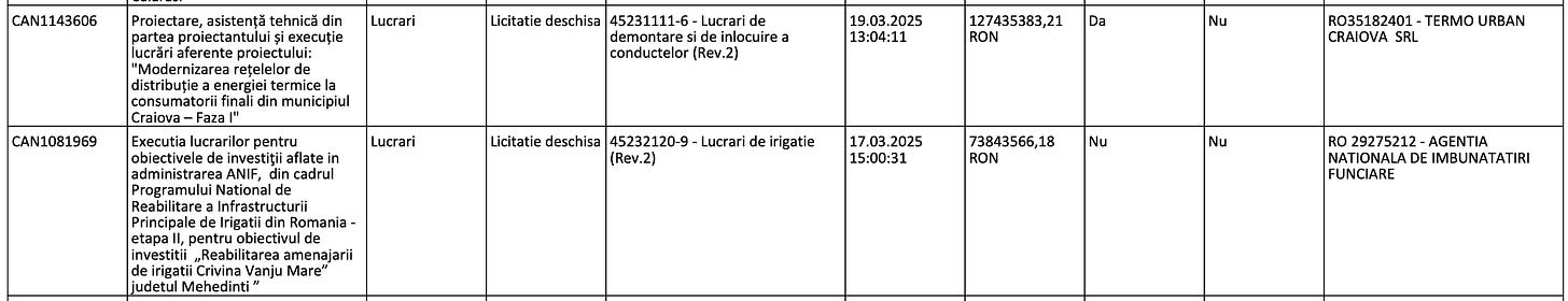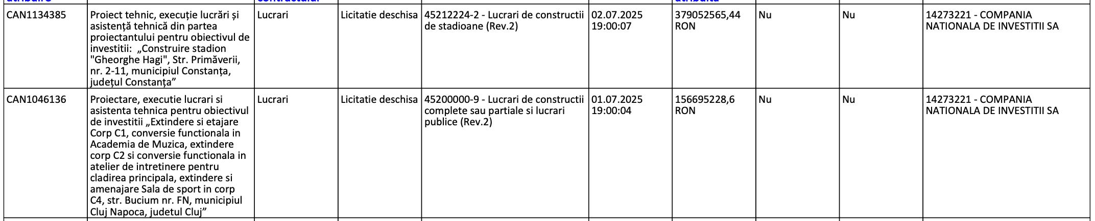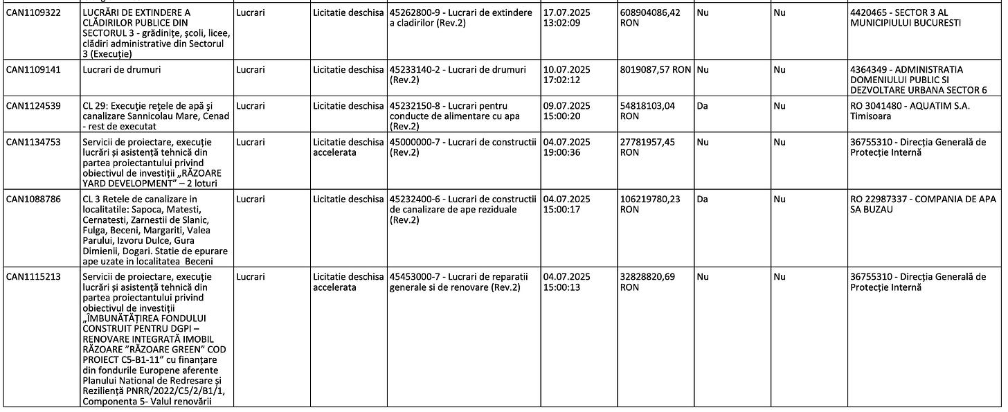 20.115.186.406,73 lei + TVA reprezintă suma contractelor atribuite în 2025 până la data la care scriu aceste cifre (29.VIII.2025), din care 3.310.068.374,89 lei + TVA sunt cu CNI. (la care se mai adaugă un acord-cadru căruia n-am avut timp să-i studiez detaliile - Acord-Cadru-Executarea lucrărilor de reabilitare termică a blocurilor de locuințe din Sectorul 2 al Municipiului București (Lot 1+Lot 2+Lot 3+Lot4))