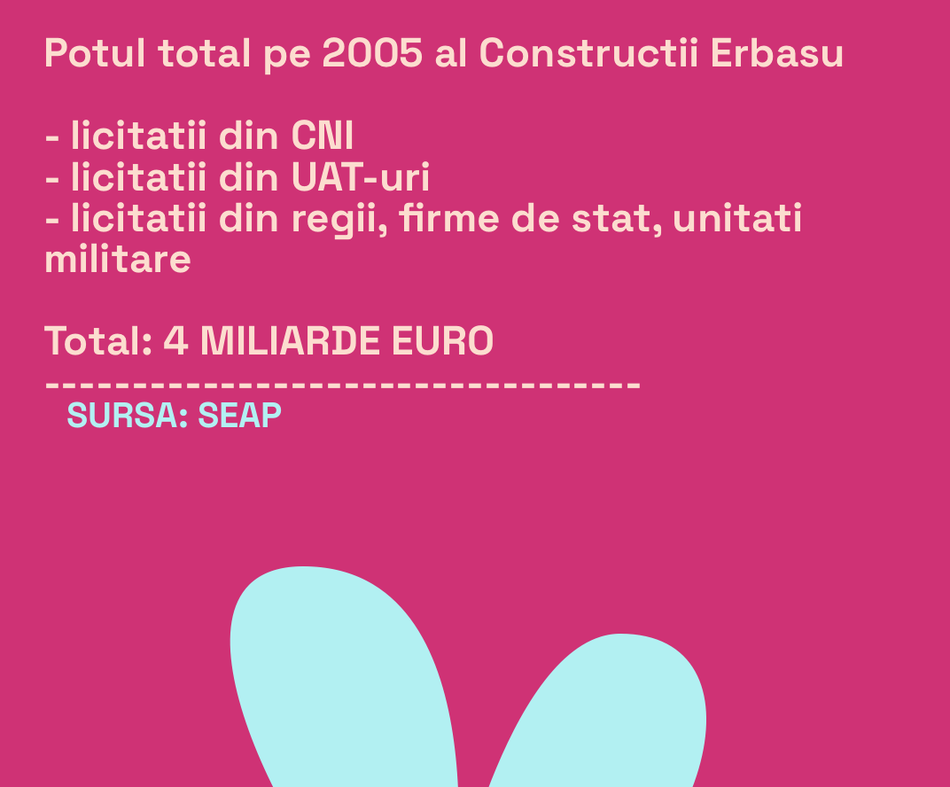In fapt, pe 2025 si 2024, Erbasu Constructii a luat din tara, doar din tara, licitatii de 19,6 miliarde de lei, fara banii din CNI, sa ne intelegem.
