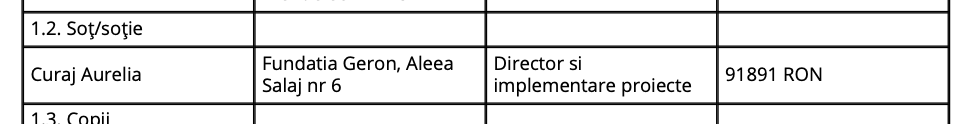 Si sotioara se descurca. Isi suplimenteaza pensia cu venituri din propria fundatie. De fapt, Geron e fundatie, dar pe ea se opereaza un azil de batrani cu acelasi nume din care matusa Aurelia Curaj scoate venituri de peste 400 de mii de euro pe an potrivit ministerului de Finante.
