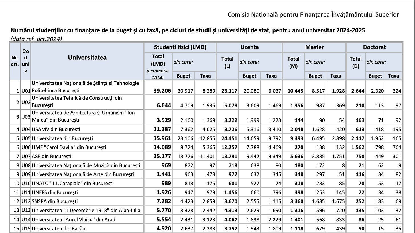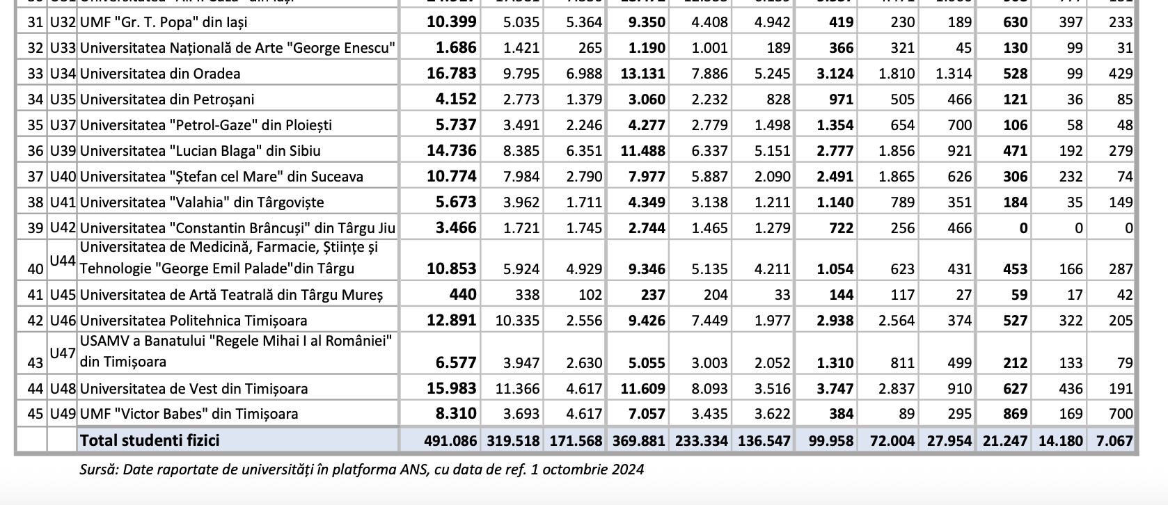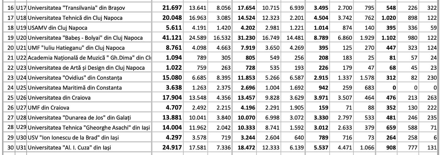 45 de universitati romanesti sug DOAR PENTRU ELE 10 la suta din bugetul Educatiei.