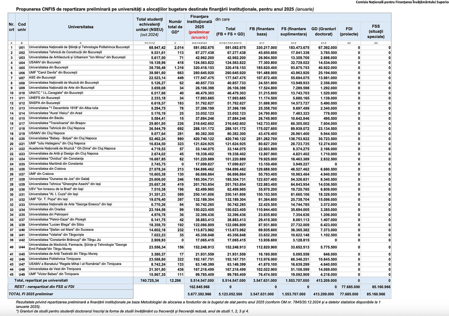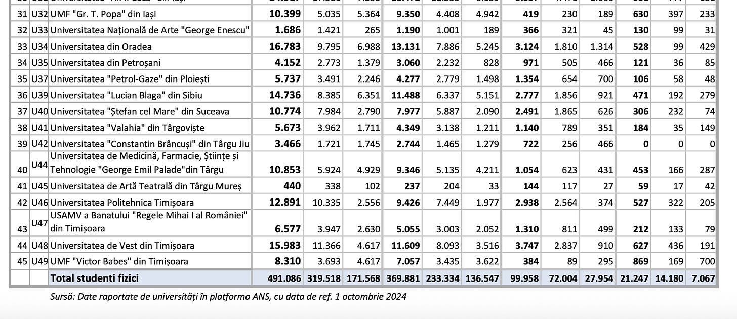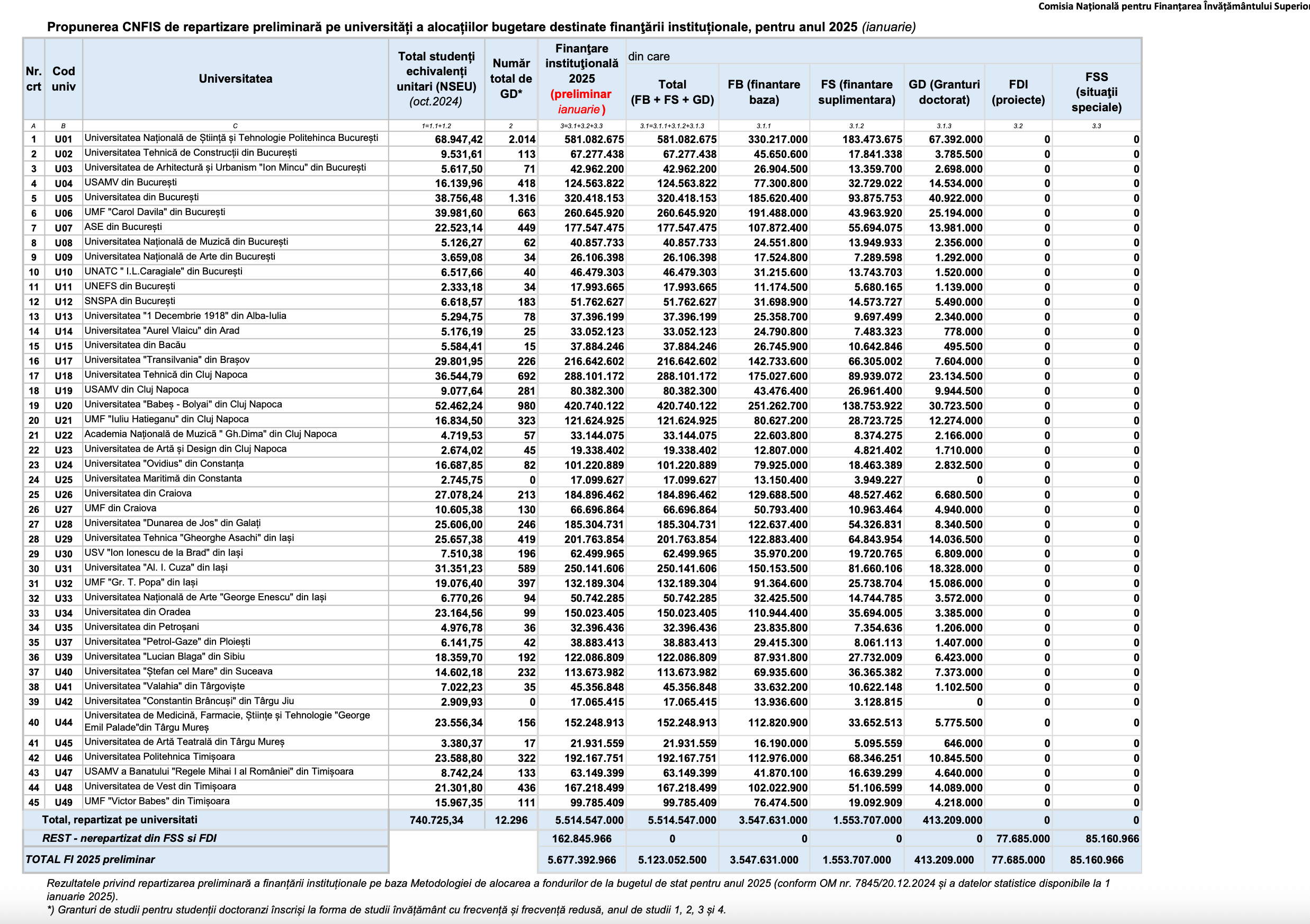 45 de universitati romanesti sug DOAR PENTRU ELE 10 la suta din bugetul Educatiei.