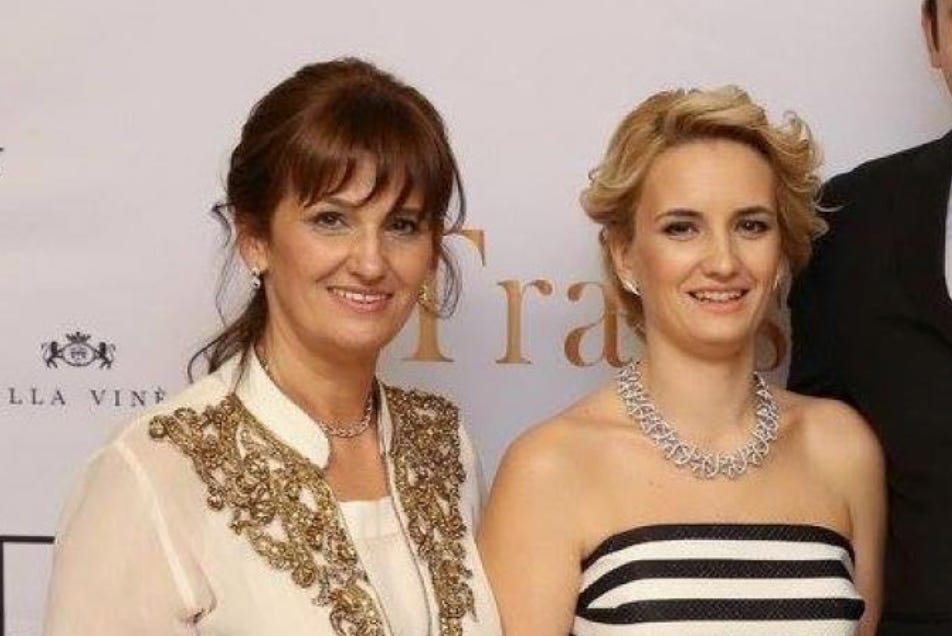 In stanga, mama, in dreapta, fiica, doua martafoaice cu zambete false, mǎşti puturoase ale unor caractere execrabile.