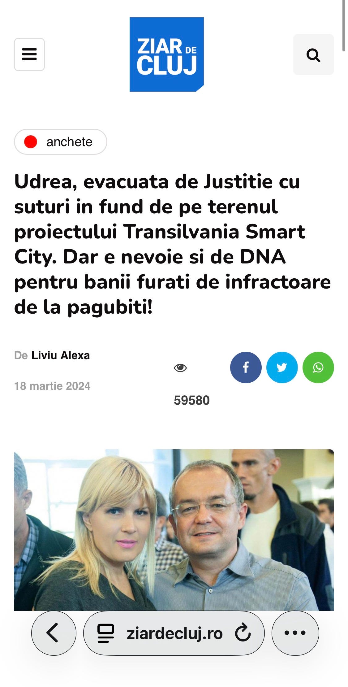 Mi-a atras atenția în mod special, și de aia am ales să aștern „micilii mele rândulețe” , momentul în care doamna Udrea n-a evitat intenționat să vorbească despre țeapa Transilvania Smart City pe care a dat-o împreună cu finul Adrian Gurzău și soțiorul manechin, atât de important că nu-i mai știu numele.