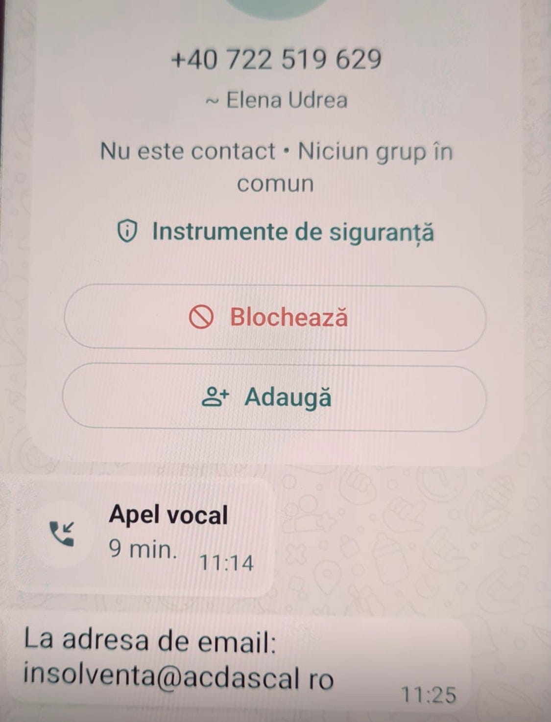 În data de trei septembrie a.c., Elena Udrea a sunat ca o disperată la toți clienții păgubiți să-i convingă să îi voteze planul fals de reorganizare.Vă dați seamă cât tupeu? Doamna Udrea a sunat chiar și după ce votul s-a încheiat, iar asta oglindește fără tăgadă nu doar câte de disperată e, cât și de escroacă.