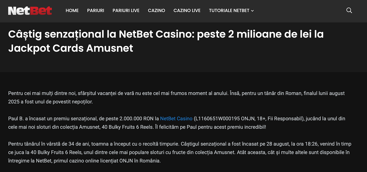 Vedeti, acum cateva zile, s-a mai castigat un jackpot la Netbet. Dar ala s-a dat.