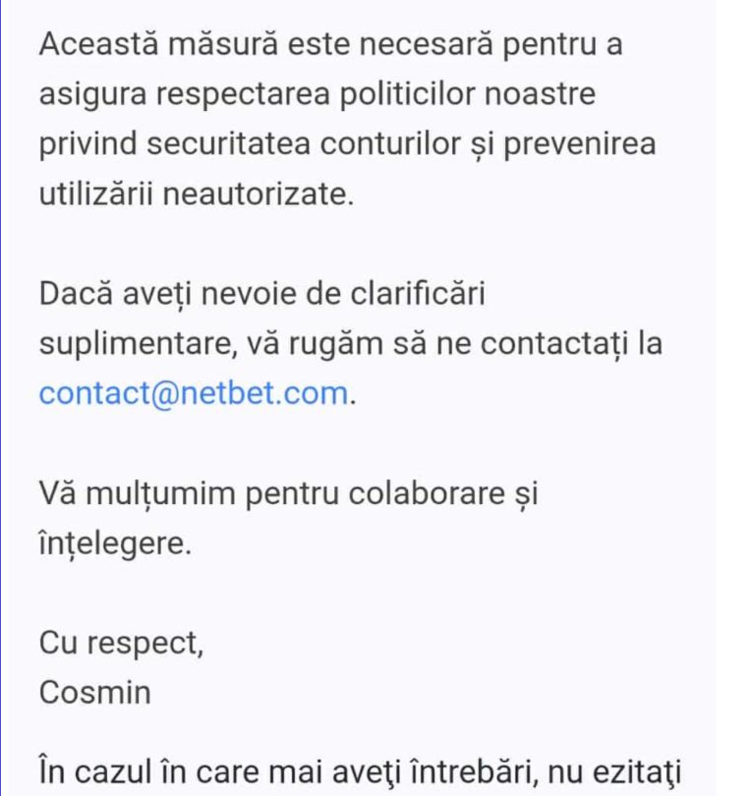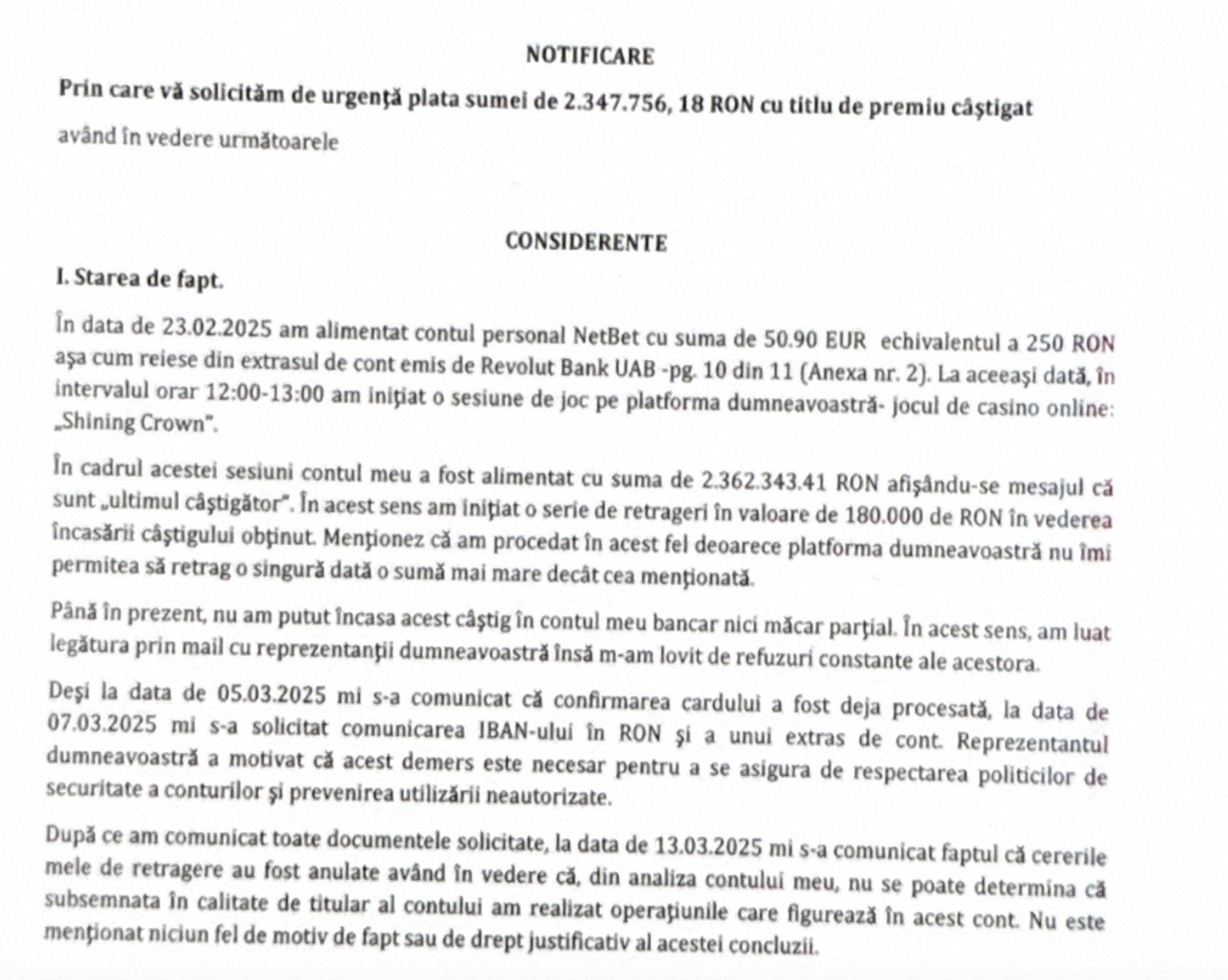 E important insa sa vedem pana unde merge jegosenia Netbet: avocatul Stetca explica meticulos totul in notificare.