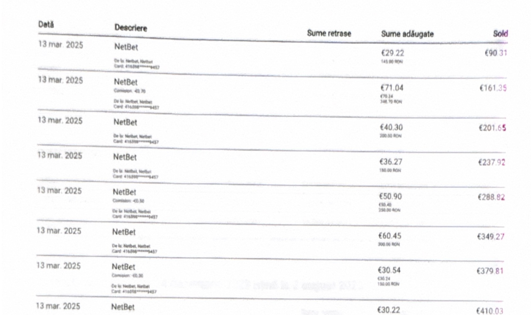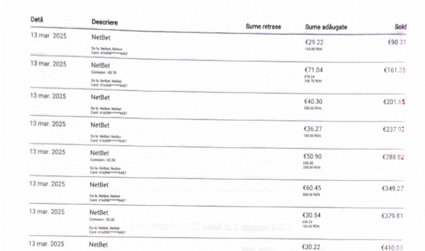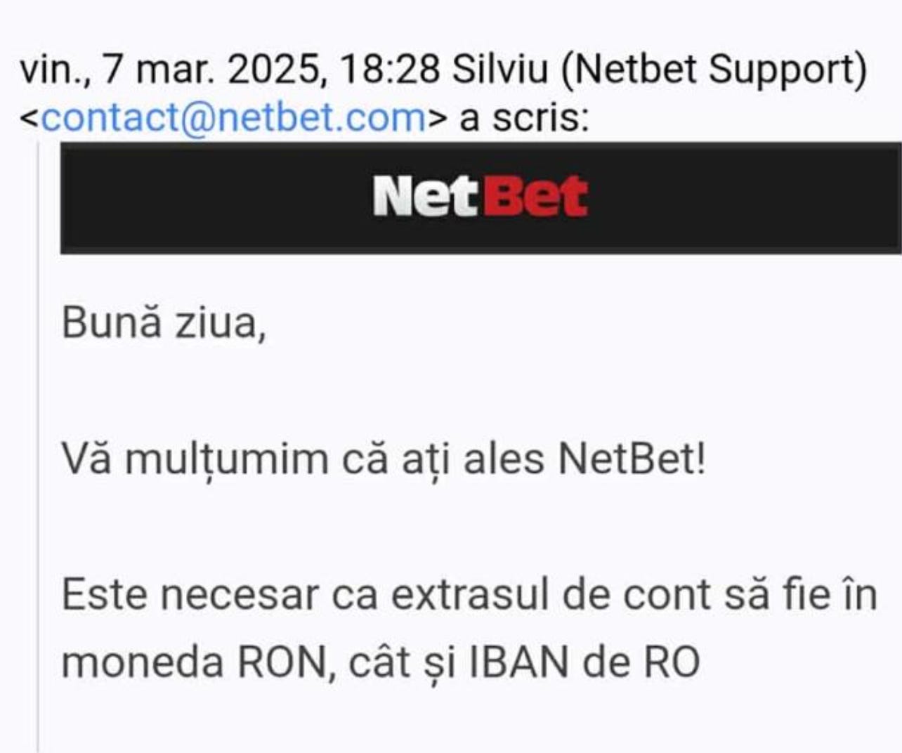 Asa ca au trombonit-o 6 luni din februarie pana azi. Ca n-are basca, ca nu are extras de cont in RON, de zici ca ei, netbetistii erau inspectori fiscali de la ANAF: