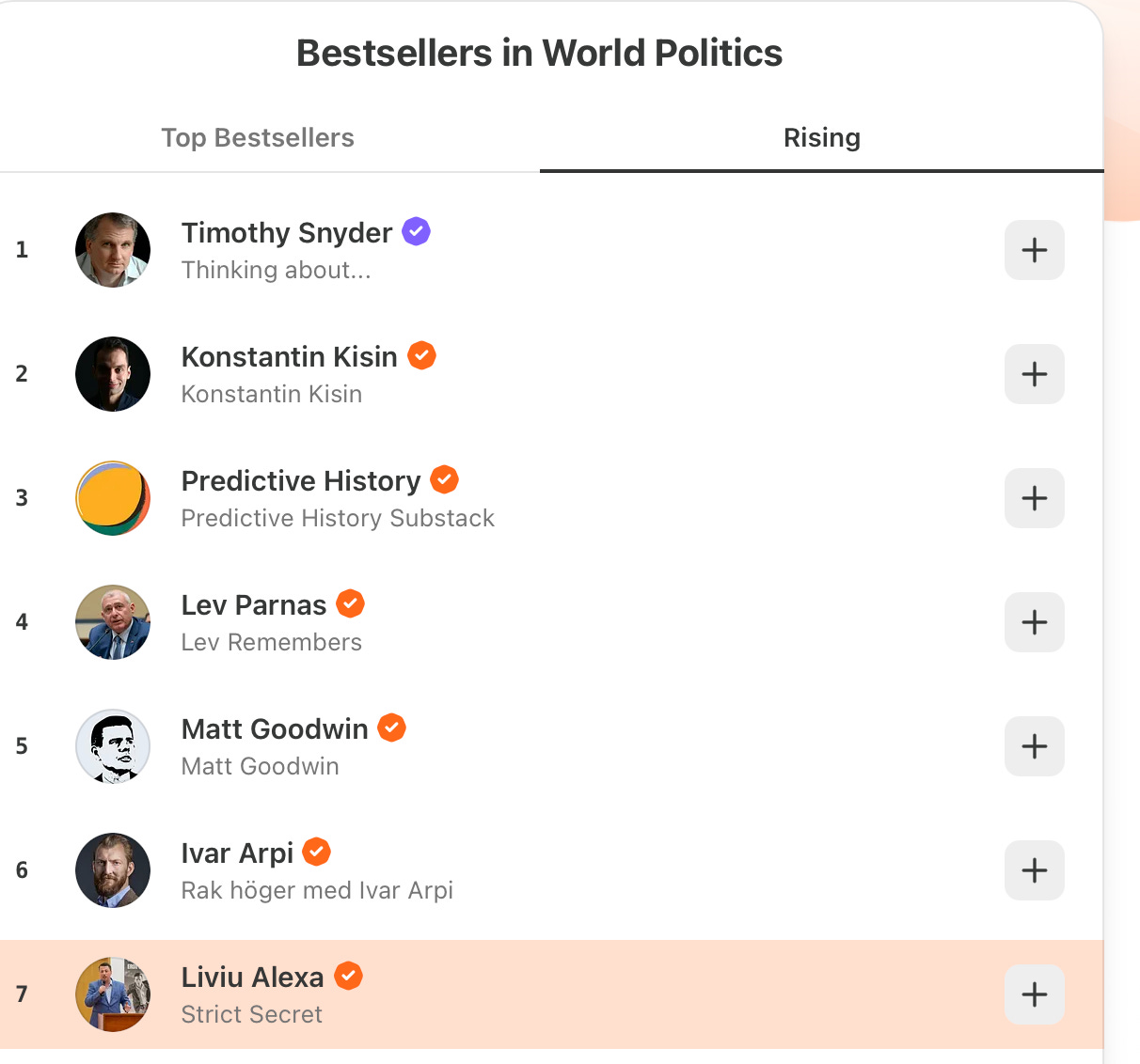 Strict Secret este newsletterul de investigatii nr. 1 din Romania, cu 275 000 de cititori. Nu o spun eu, o spune Substack. Si nr. 7 in LUME pe categoria World Politics.