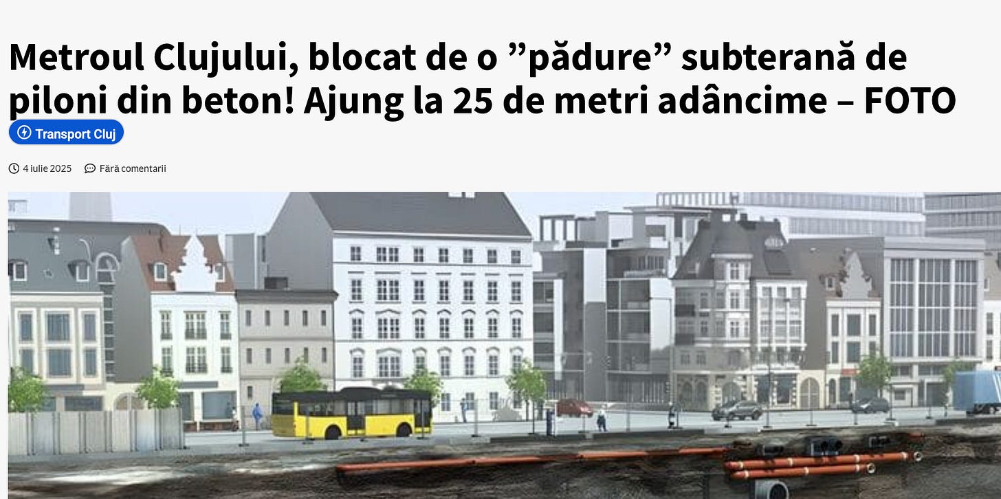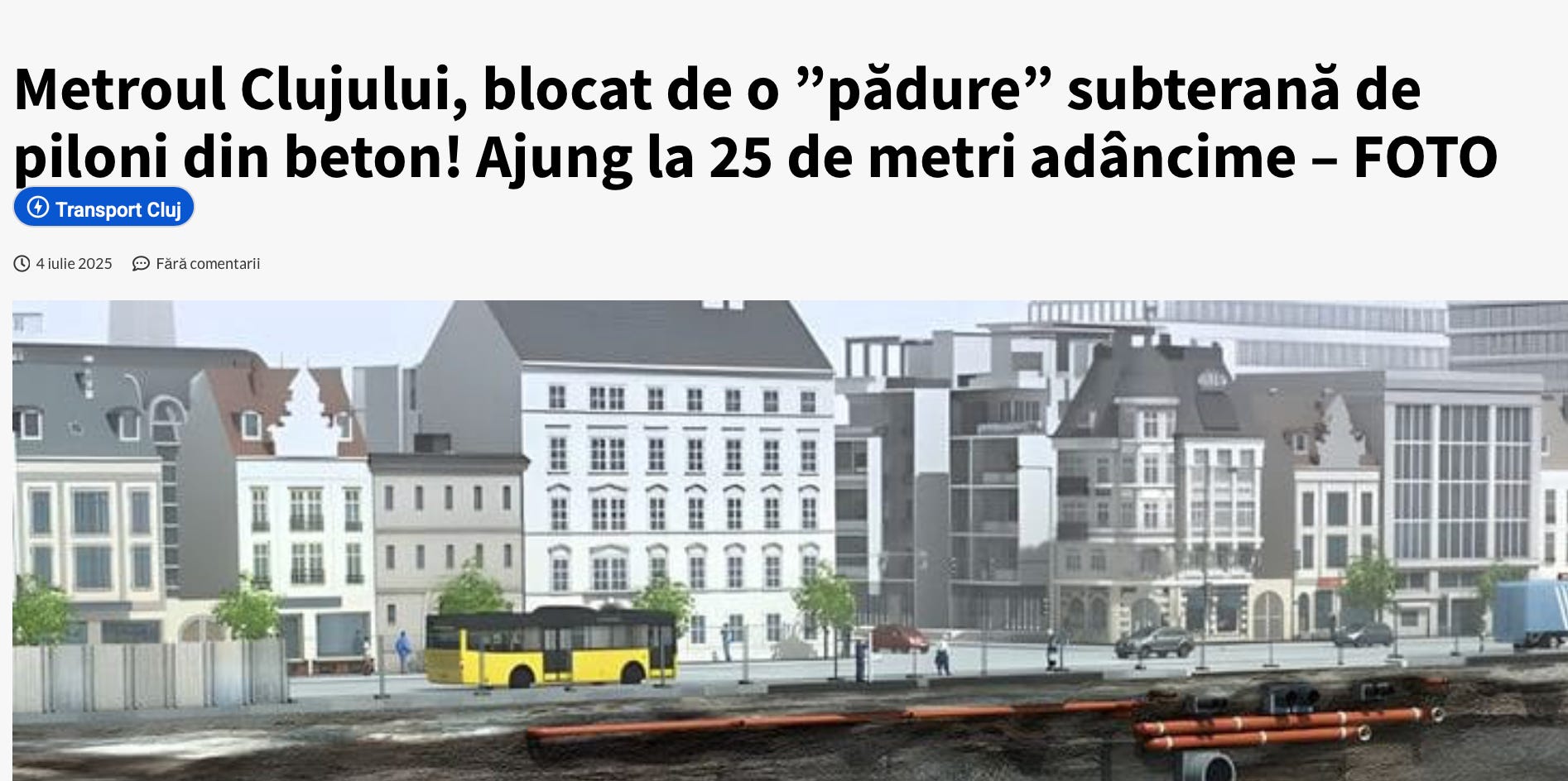 O problemă majoră a fost descoperită pe traseul viitorului metrou din Cluj-Napoca. În zona Florești, proiectul se lovește de o structură subterană masivă, realizată în urmă cu aproape un deceniu.