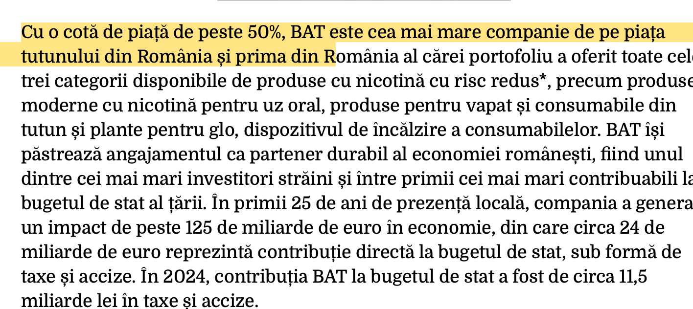 Uite cum face BAT (de fapt, toti mentionati din tutun) - o data pe semestru publica o dare de seama continand labe triste si cifre “oficiale” in care ne vorbesc de sus, ca unor sclaveti, cat de benefici sunt ei economiei romanesti.