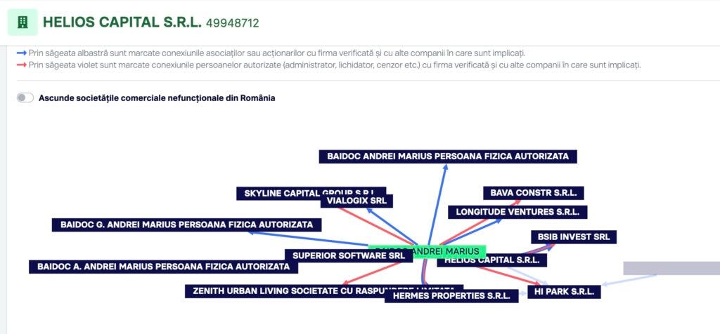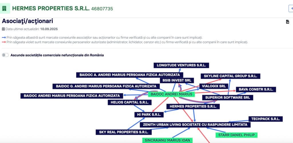 Angajat pe o poziție influentă în Primăria lui Boc, liberalul Călin Forna a fost până în urmă cu două luni administrator și asociat alături de Andrei Marius Baidoc, în FOR CM SRL, firmă care și-a schimbat numele în HELIOS Capital (beneficiară a proiectului de pe Calea Turzii). Forna a renunțat la calitatea sa de administrator în această firmă cu doar două luni în urmă, respectiv în august, 2025, însă în declarația sa de avere apar menționate tranzacții care de asemenea conduc spre proiectul de pe Calea Turzii, încheiate cu unul dintre beneficiarii din lista menționată – Levi Yehoshua, un afacerist care deține cetățenie israeliană și pe care-l regăsim implicat și în alte afaceri/firme controlate de Ovidiu Vișan. Până în 2022, Călin Forna a fost asociat cu Baidoc și în firma beneficiară HERMES PROPERTIES, care la rândul ei conduce spre alte firme active pe piața imobiliară, controlate de același Baidoc.