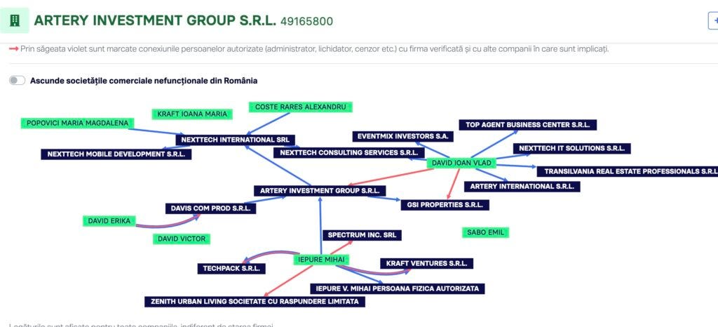 În lista de beneficiari ai proiectului de pe Calea Turzii apare și firma ARTERY INVESTMENT GROUP SRL care își are sediul în județul Sălaj, dar și un punct de lucru în Cluj Napoca, pe Calea Moților. Firma are aceleași conexiuni cu persoane și firme menționate mai sus. Este administrată de Iepure Mihai (administrator și asociat), acesta fiind asociat și în alte firme conectate la rețeaua expusă mai sus). Sursele Actual de Cluj spun că în spatele firmei s-ar afla de fapt un fost ministru liberal din Sălaj, care în ultimii ani a investit masiv în piața imobiliară din Cluj. În afară de acesta, mai sunt vehiculate numele a cel puțin doi liberali clujeni care fac parte din cercul apropiaților lui Emil Boc.