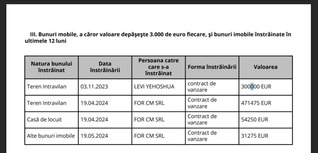 Tranzacțiile încheiate de Călin Forna pe de-o parte cu firma sa beneficiară FOR CM SRL (actuala Helios Capital) și cu persoana fizică Levi Yehoshua sunt cel puțin suspecte, pentru că bunurile imobiliare tranzacționate în 2023 și 2024 nu apar în declarațiile sale de avere anterioare și nici veniturile obținute nu pot fi regăsite în declarația din 2025. Concret, Forna declară că în calitate de persoană fizică a vândut firmei în care era asociat și pe care o și administra o casă de locuit cu 54.250 de euro, un teren intravilan cu 471.475 Euro, dar și alte bunuri imobile în valoare de 31.275 de euro, care nu apar în declarații anterioare. Din nou, mențiunea că această firmă care se presupune că a achiziționat bunurile vândute de Călin Forna (astăzi Helios Capital) este beneficiar important al proiectului de pe Calea Turzii. Tot în calitate de persoană fizică, Călin Forna declară că i-a vândut lui Levi Yehoshua (alt beneficiar al proiectului de pe Turzii), un teren intravilan cu 300.000 de euro. Un total de 857.000 de euro care nu se regăsesc mai departe în declarația din 2025.