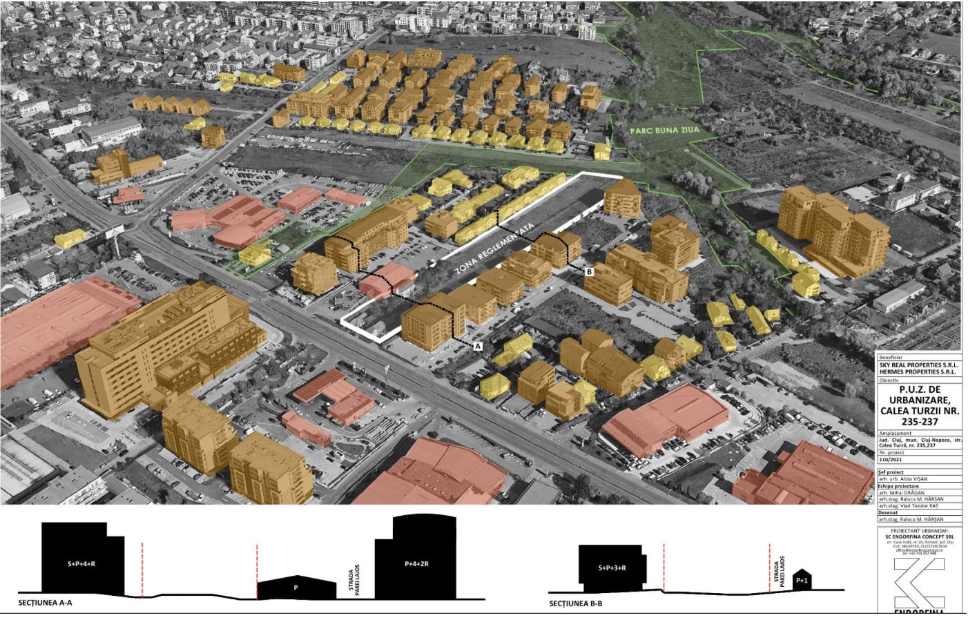 PUZ-ul ce urmează să fie aprobat în ședința Consiliului Local de joi prevede urbanizarea unui teren de 1,13 ha, pe Calea Turzii, vizavi de OMV, o zonă extrem de aglomerată din municipiul Cluj Napoca, fiind indicată o zonă mixtă cu regim de construire deschis. Pe o suprafață de numai un hectar se dorește construcția a nu mai puțin de 11 imobile.