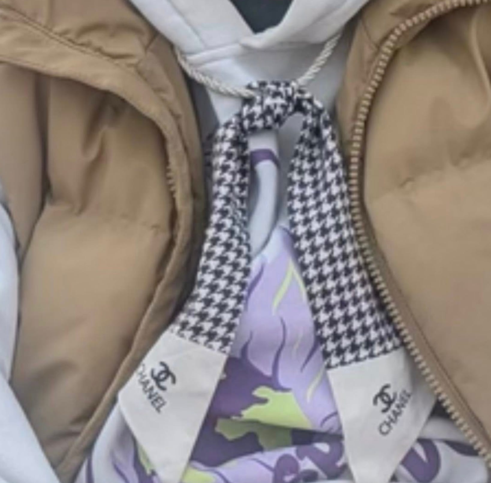 Dar la gâtul lui atârna un fular Chanel – probabil cusut de mâini care primesc salarii de subzistență în Bangladesh sau Vietnam, într-o fabrică unde orele suplimentare obligatorii și condițiile de muncă degradante sunt parte din pachetul standard de sclavie modernǎ.