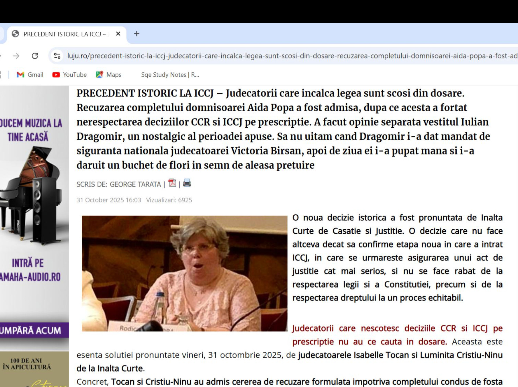 Diana Ionescu, lector al Universității Babeș Bolyayi (UBB) din Cluj, unde predǎ predă procedură penală, le dǎ pe Facebook magistraților o lectie de demnitate excelentǎ: e musai sǎ o citiți.