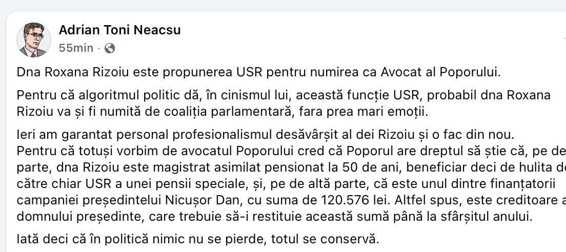 Dezvaluirea a fost fǎcutǎ de fostul membru al CSM, Adrian Toni Neacșu: