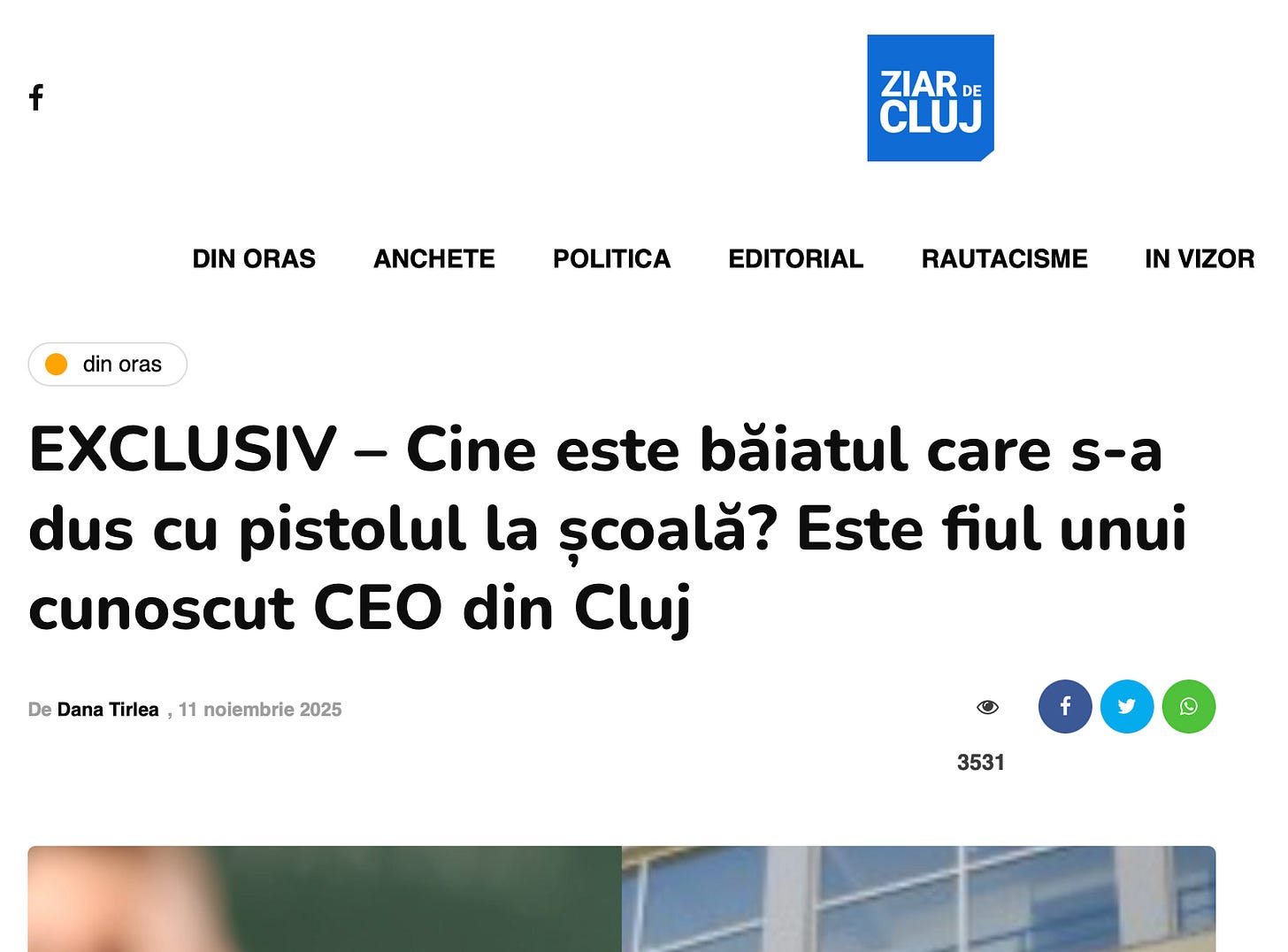 Un băiat de 13 ani s-a dus la școală la un reputat liceu din Cluj cu un pistol de tip airsoft și a rănit o colegă. What?