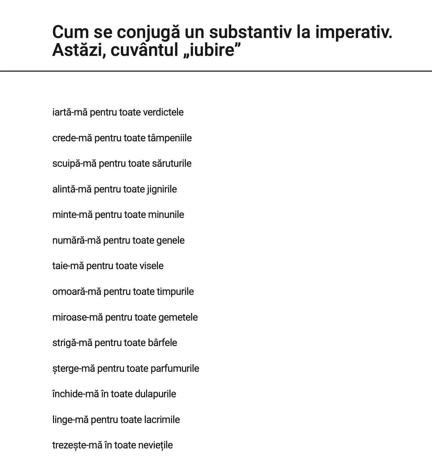 Să iubești, să faci, să observi, să fii curios, să fii mirat, să taci, să cânți, să lupți, să râzi.