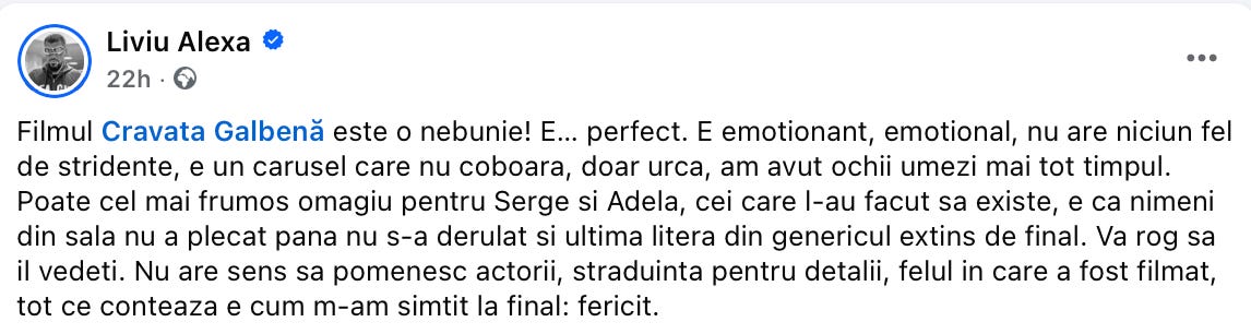 Așa că azi, newsletterul „de duminică” are un gust mai melancolic. O să vă placă, negreșit — dar azi o să vedeți un altfel de Liviu.