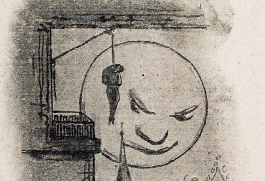 Le Gibet (Spânzurătoarea) este piesa centrală și cea mai sumbră. Un si bemol repetat obsesiv în registrul mediu simbolizează clopotul care bate în depărtare, în timp ce un cadavru se leagănă atârnat de spânzurătoare. Armonia este statică, claustrofobică, creând o atmosferă de coșmar meditativ. E muzică care îngheață timpul și respirația.