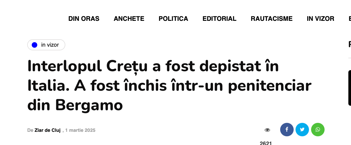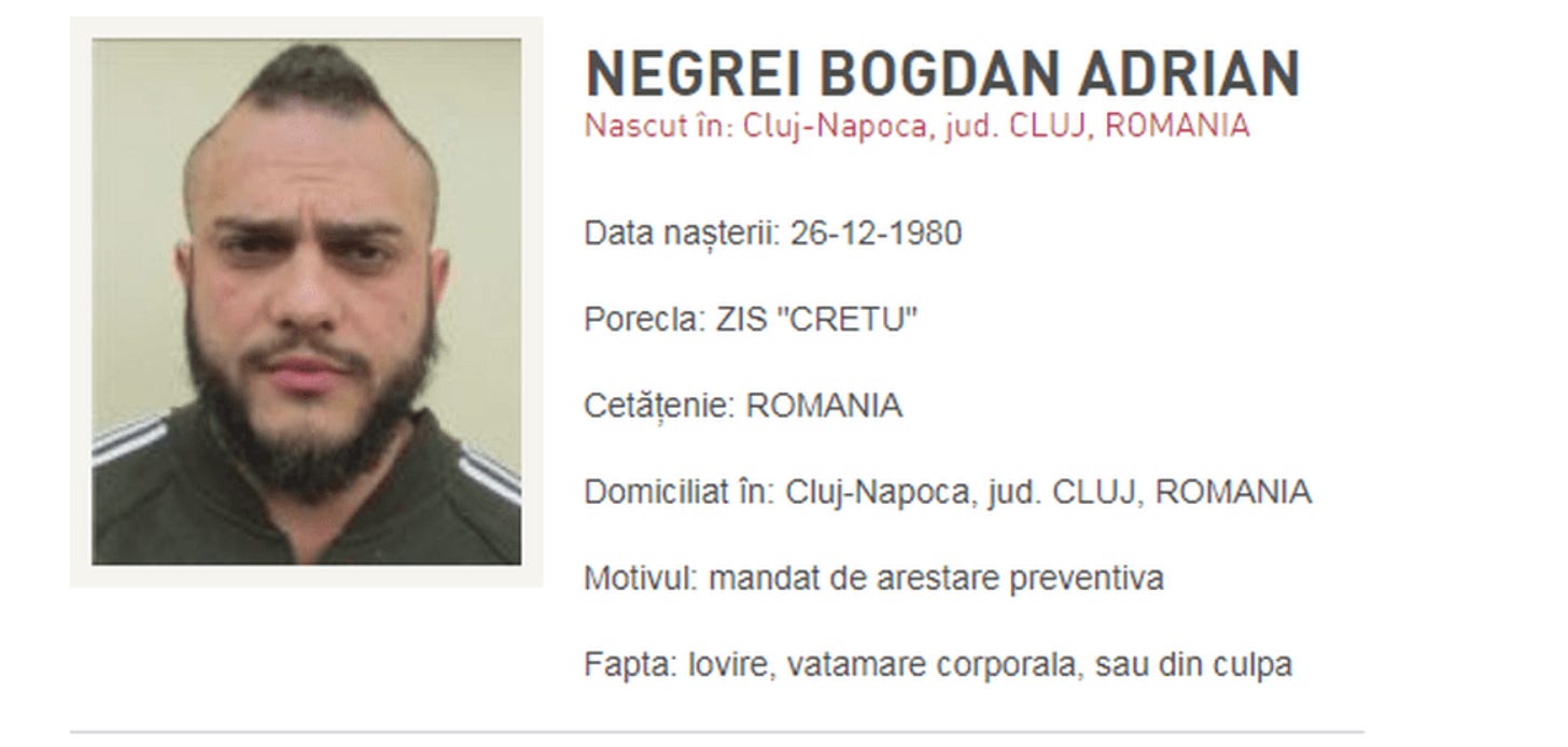 Intre timp… pentru ca Justitia din Romania e plina de judecatori progresisti misericordiosi… Negrei s-a tirat in Italia de unde isi batea joc de politistii care il dadusera in urmarire generala.