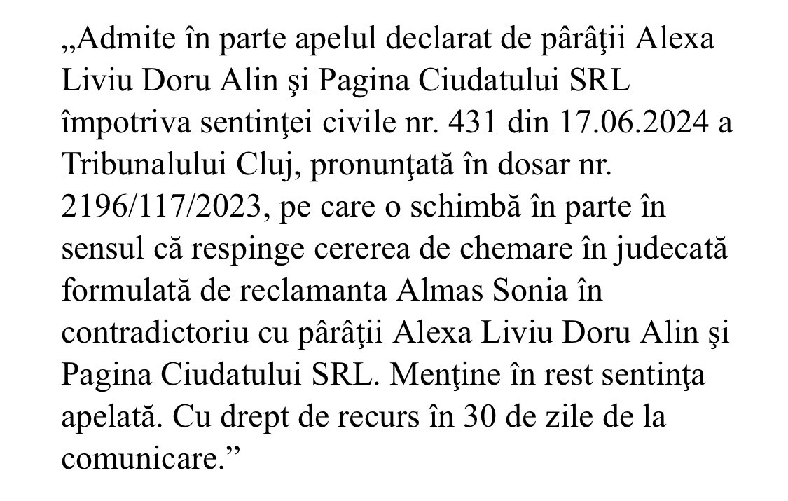 Am castigat recent procesul, nici nu am mai vrut sa ma mai “laud” cu asta, Sonia Almas si-a luat-o in bot de la instanta, si asta datorita avocatei Isabela Porcius, o femeie de o rabdare si incapatanare incredibile de la casa de avocatura a maestrului Mihai Lapusan.