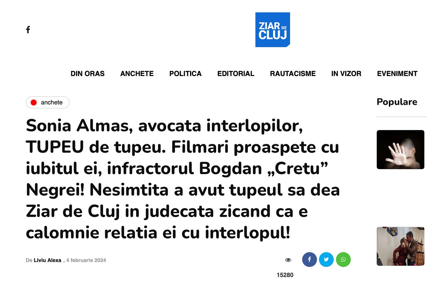 Scriu despre ea de ani de zile. Scriu ca nu e normal ca Baroul Cluj nu a exclus-o pana acum, nu pentru ca ii reprezinta pe interlopi, ci pentru comportamentul neconform cu statutul de avocat.