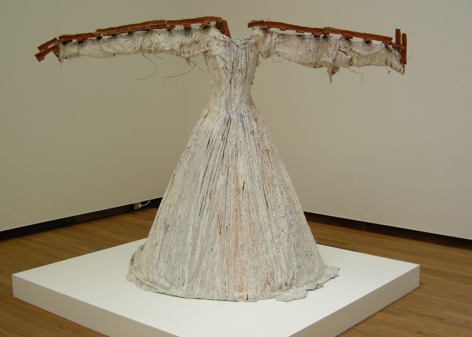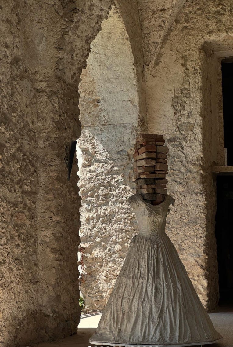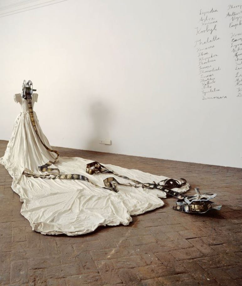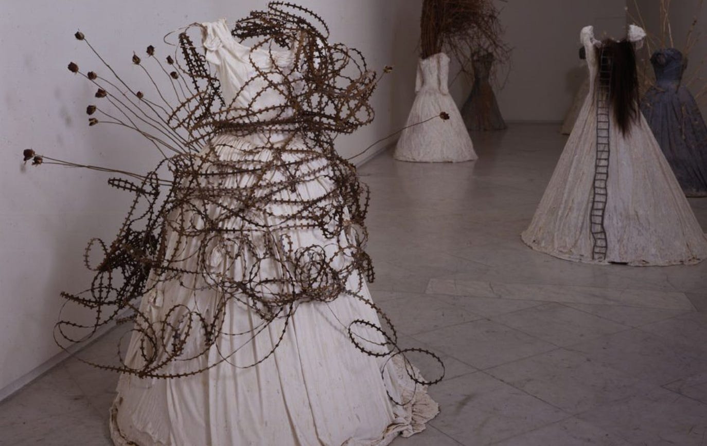 Unele dintre haine stau în picioare de parcă ar fi sculpturi autonome, în spatele cărora se află panouri mari albe pe care ies în evidență numele personajelor reprezentate. Altele sunt suspendate, fixate pe suporturi de plumb, asediate de un labirint de sârmă ghimpatǎ. Toate aceste elemente formează o frescă istorică impunătoare în care fiecare femeie poartă povara atributelor care îi dezvăluie identitatea și fac aluzie la povestea ei personală.