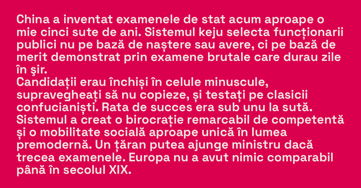 Când romanii își construiau primul apeduct, China avea deja o birocrație funcțională, un sistem de examene pentru funcționari publici și o rețea de drumuri care lega provincii cât nişte continente.