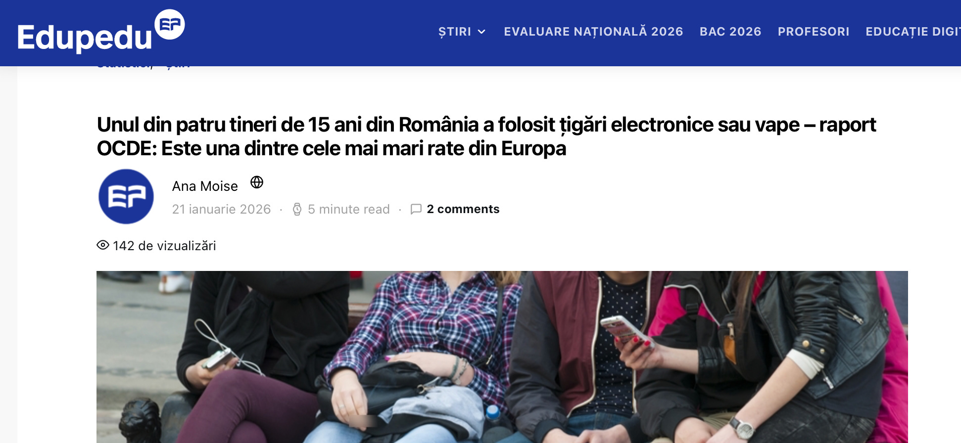 Da’ raportul aista aratǎ nu numai cǎ aproape un sfert dintre copiii noștri de cincisprezece ani fumează – fie țigări clasice, fie electronic, ci cǎ şi…