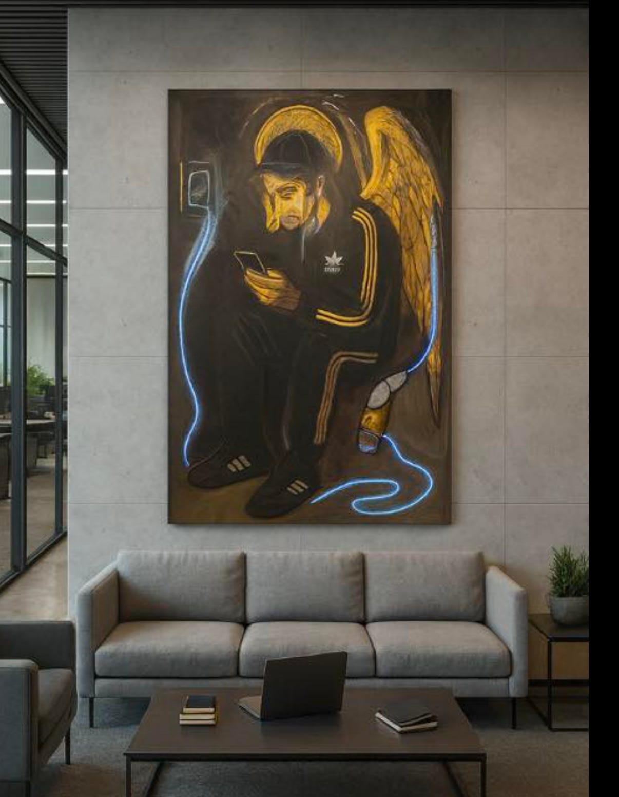 Îngerii mei poartă trening și se uită plictisiți în telefon. Madona mea e un emoji mâzgǎlit ba cu un abțibild, ba cu un like. Sacrul nu a dispărut din lumea noastrǎ, dar l-am dezbrǎcat de mister, nu ne mai e teamǎ de el, l-am băgat în buzunar, l-am pus pe silent. De aia, nu cer spectatorilor să fie de acord cu mine, mulți poate se vor isteriza, vor zice cǎ sunt obraznic sau blasfemic.