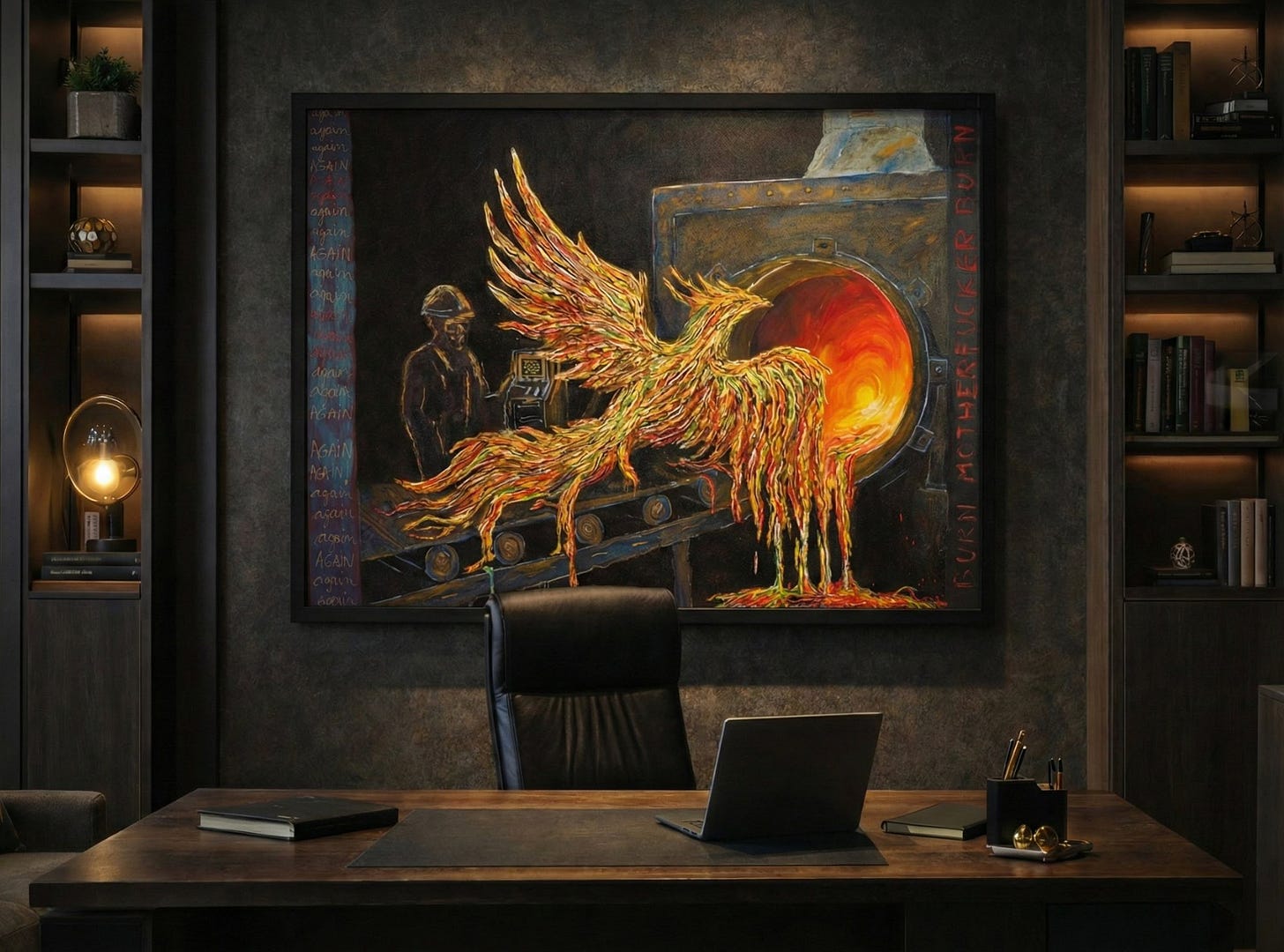 La un moment dat, ce vedeam nu mai încăpea în cuvinte. Nu pentru că n-aș fi găsit cuvintele potrivite, sunt chiar talentat la scris, ci pentru că unele lucruri, când le articulezi prea clar, devin suportabile. Și nu voiam să fie suportabile. De aia zic: pictez ce nu pot scrie. Tabloul nu judecă – pune în fața ta o viziune, a autorului, și te lasă singur cu ea.