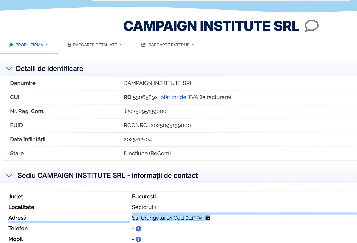 Uite, in decembrie 2025, si-a facut si firma cu sediul social la adresa fostei vile a lui Budeanu.