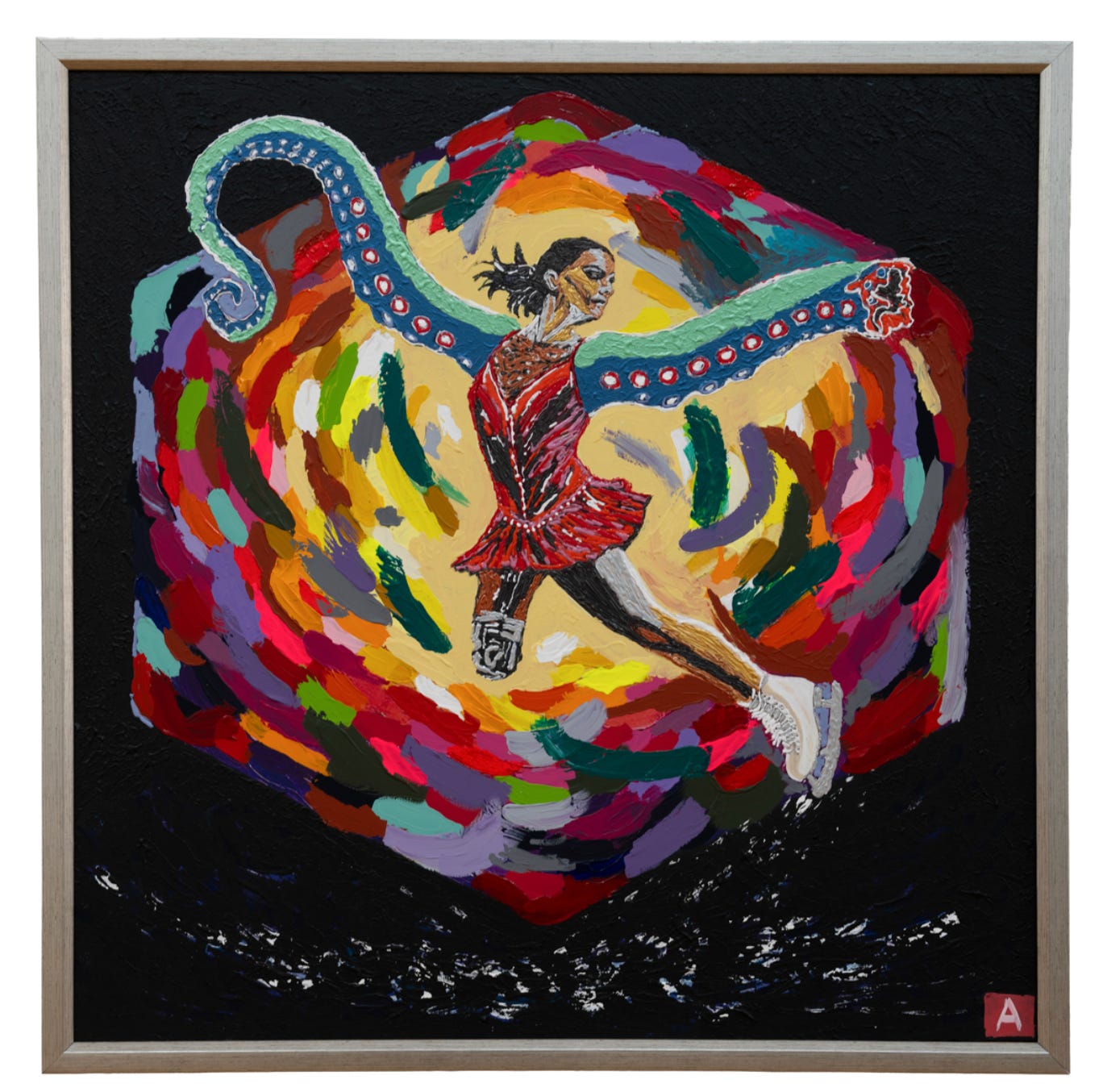 Da, încă un tablou din expoziția mea „Noi suntem Apocalipsa” a fost vândut azi cu suma de 6.000 de euro! Este vorba de „Coșmarul fetei care nu putea face saltul Dragostei” (The Nightmare of the Girl Who Couldn’t Make the Leap of Love).