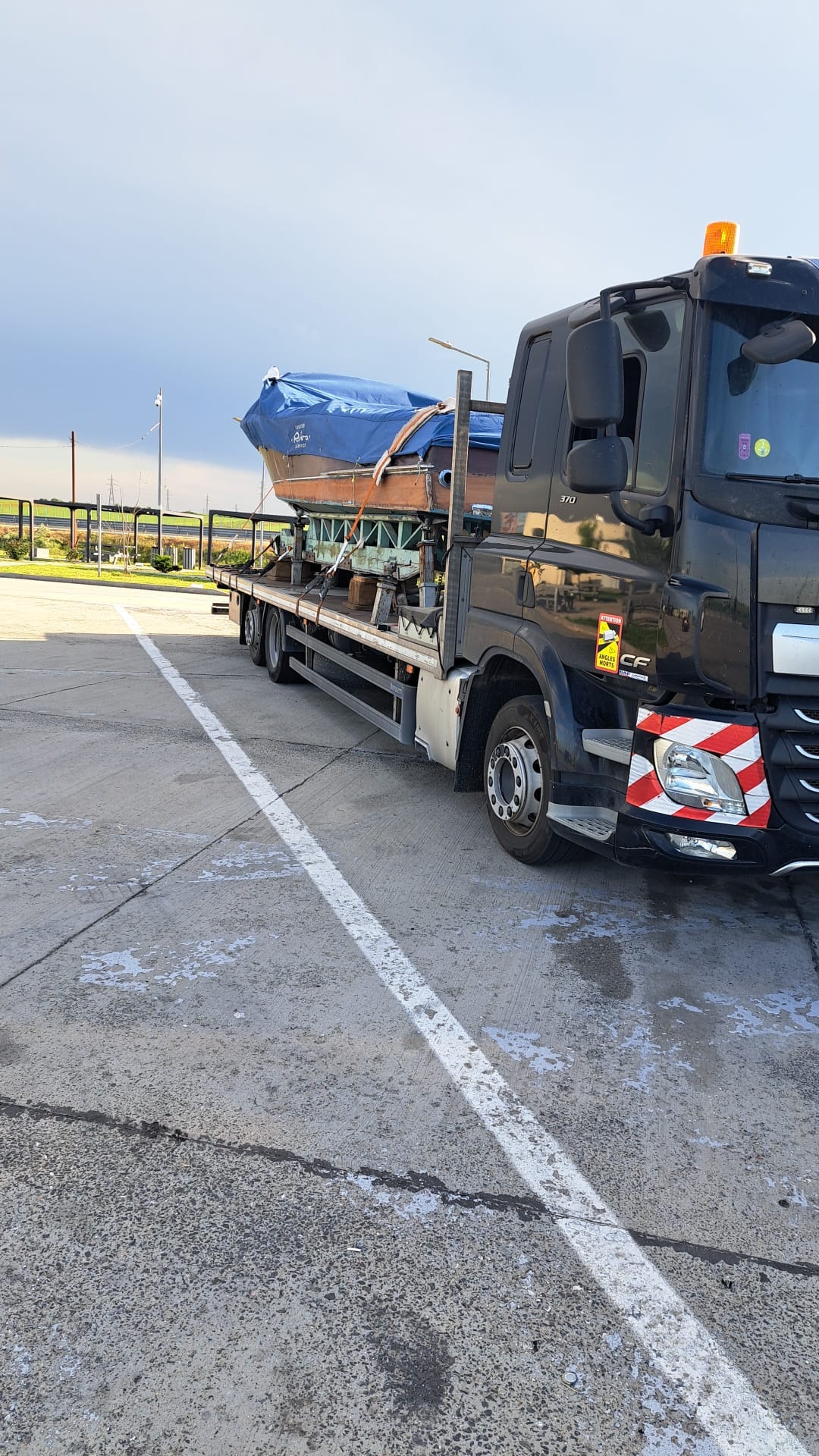 Iata pozele cu barca incarcata pe camion, la NEPTUN. Romina personal s-a ocupat de incarcare si barca fost asigurata de transport la o valoare de 850.000 Euro.